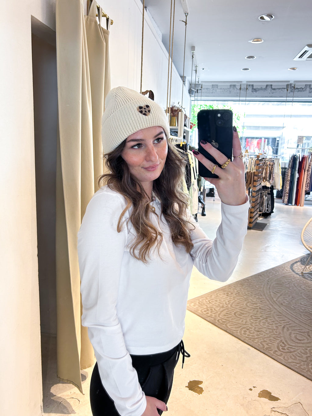 Weiche Strick Beanie mit gesticktem Herz mit Leomuster