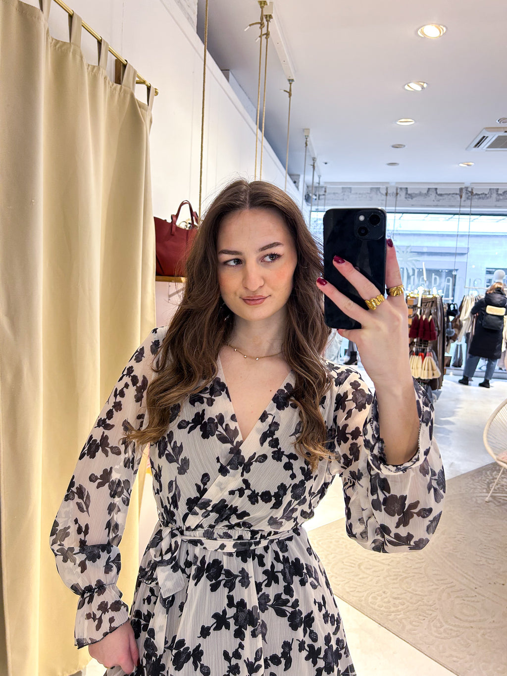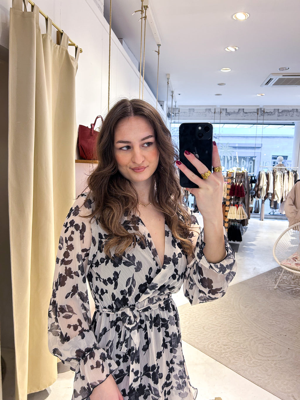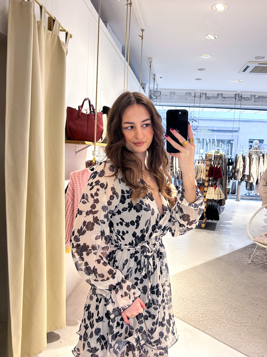 Kleid mit Blumenmuster Schwarz