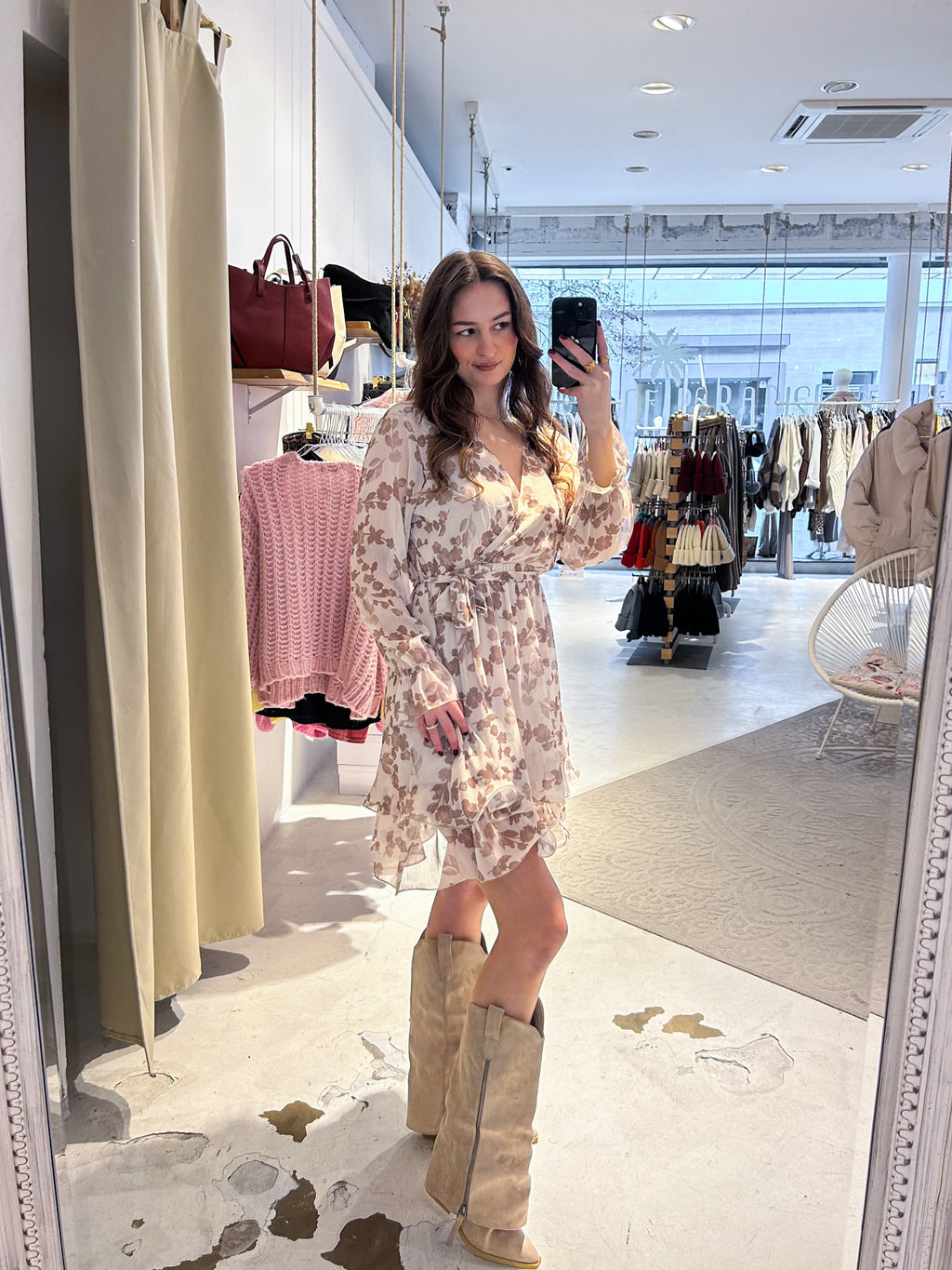 Kleid mit Blumenmuster Taupe