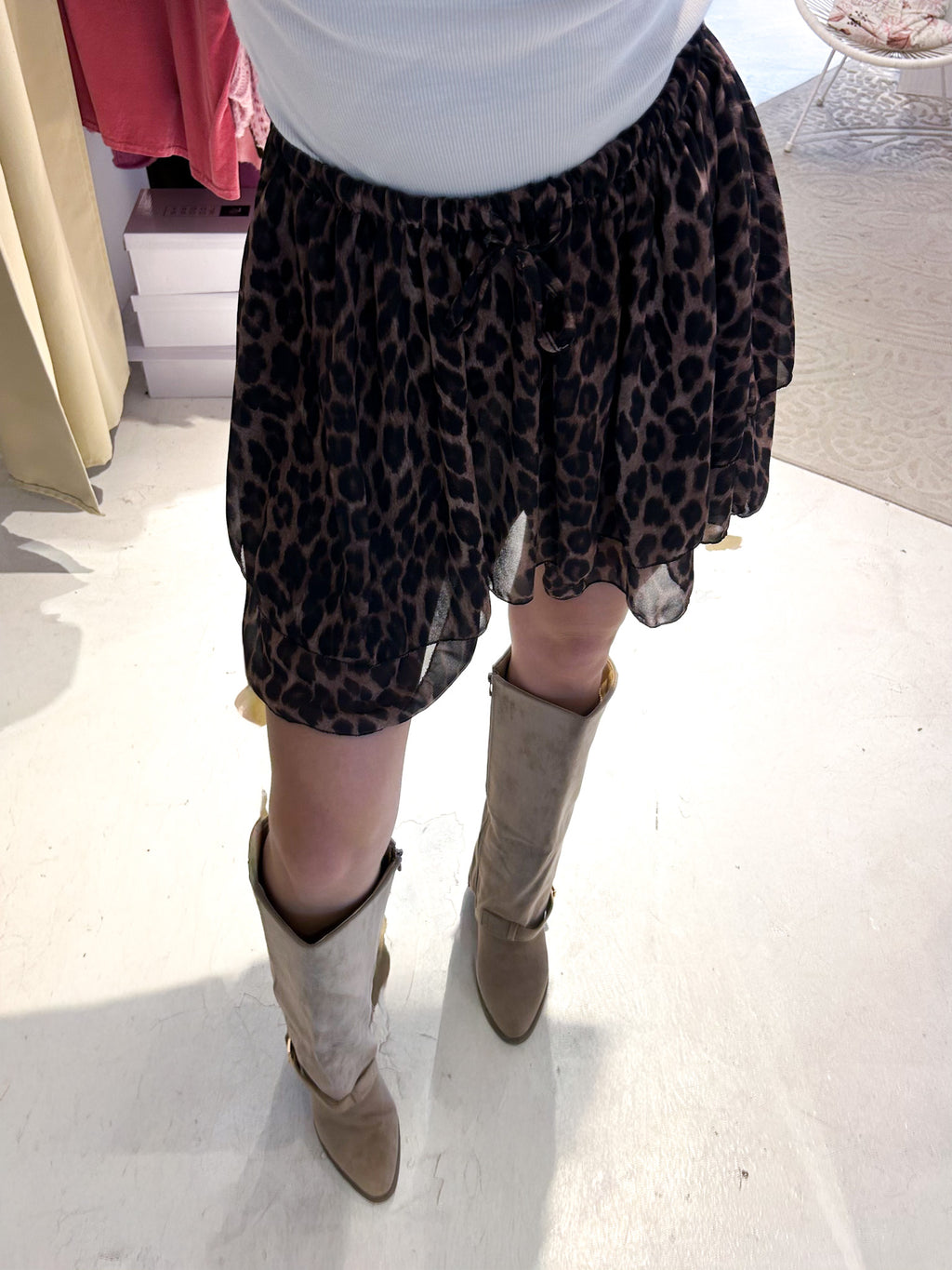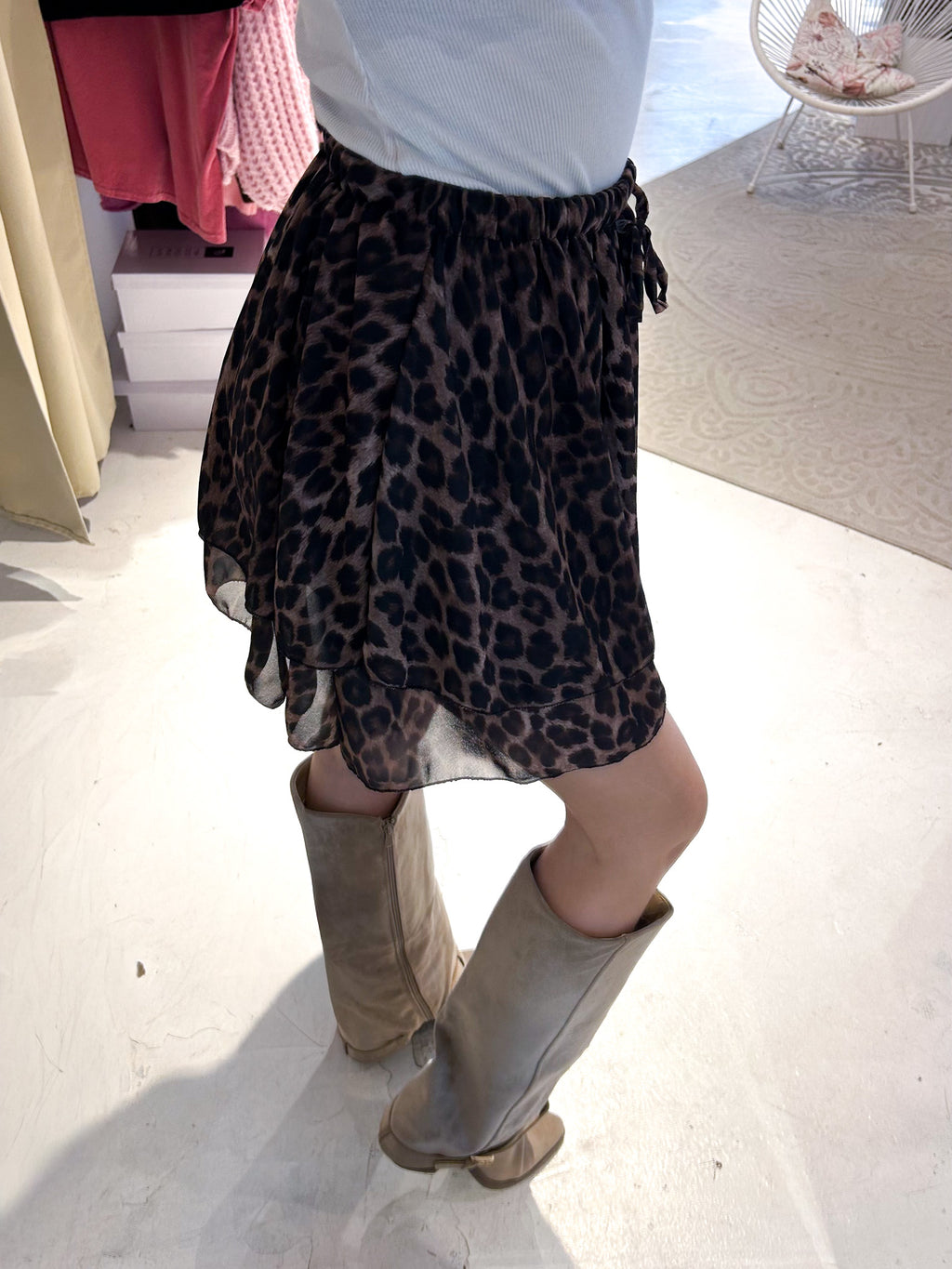 Rüschen Skort mit Leomuster Schwarz