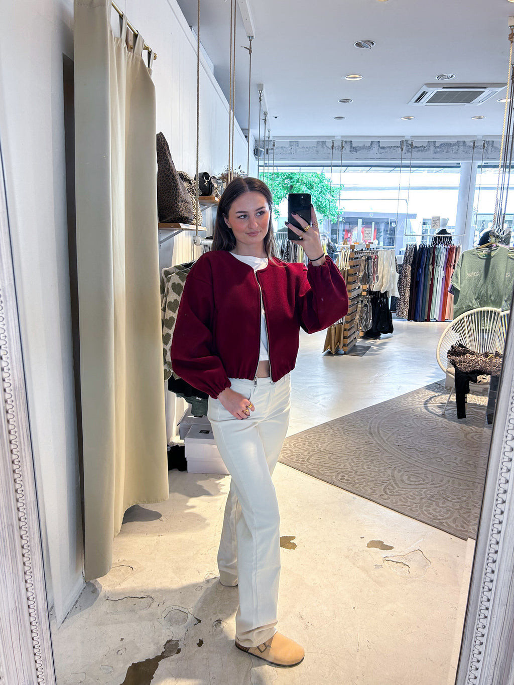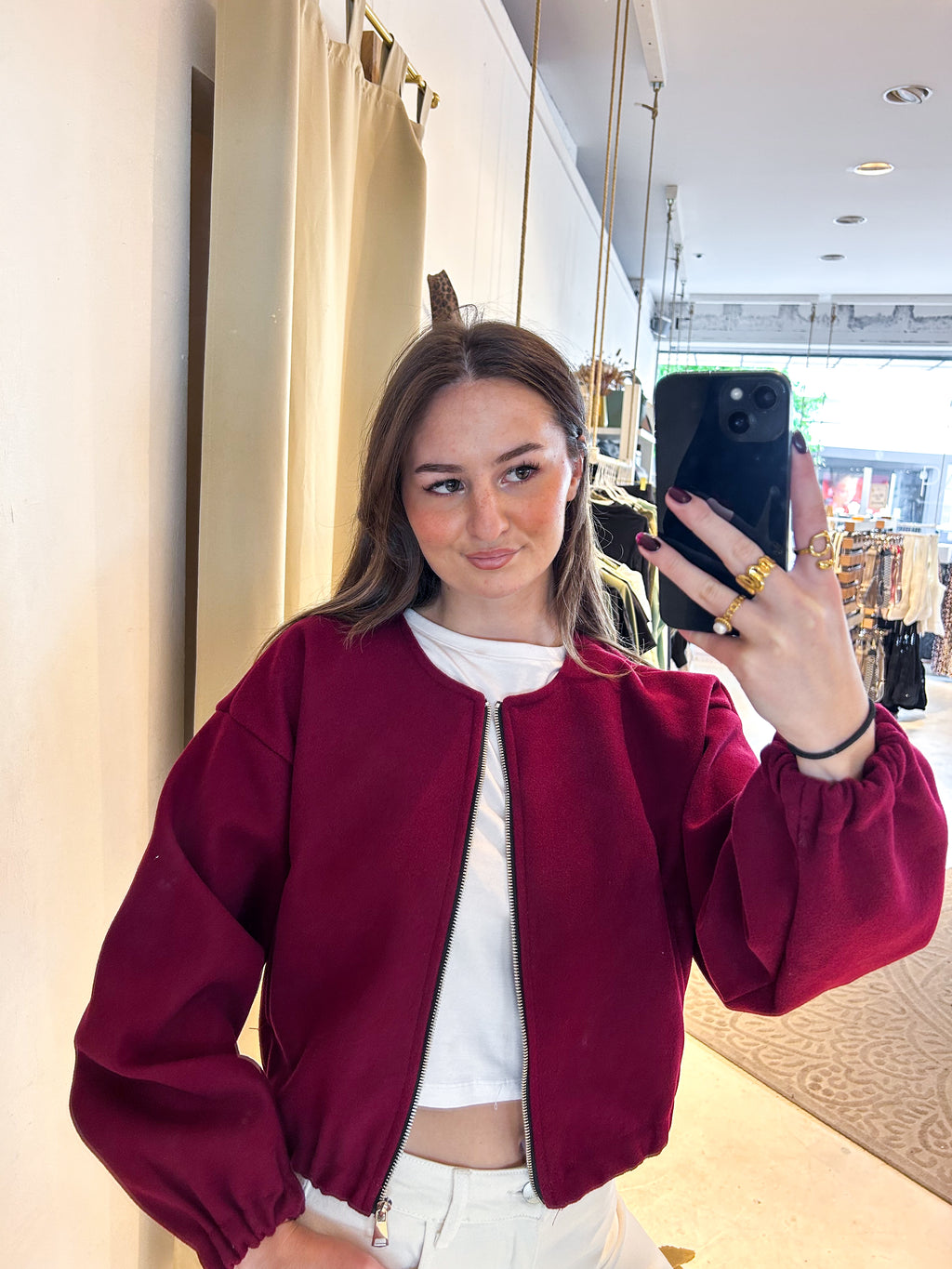 Einfach nur süß! Eine cropped Bomberjacke, die in der Mitte mit einem Reisverschluss versehen ist. Verleihe deinem Outfit einen coolen, lässigen Touch mit dieser stylischen Jacke.