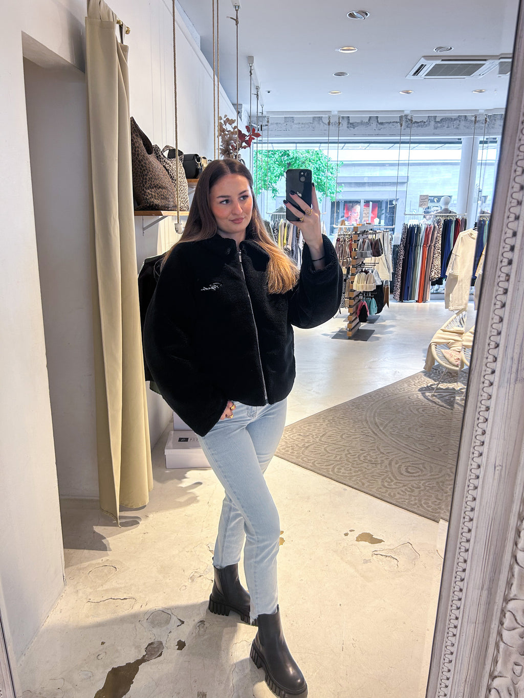 - Seitentaschen mit Reißverschluss und Logoprägung