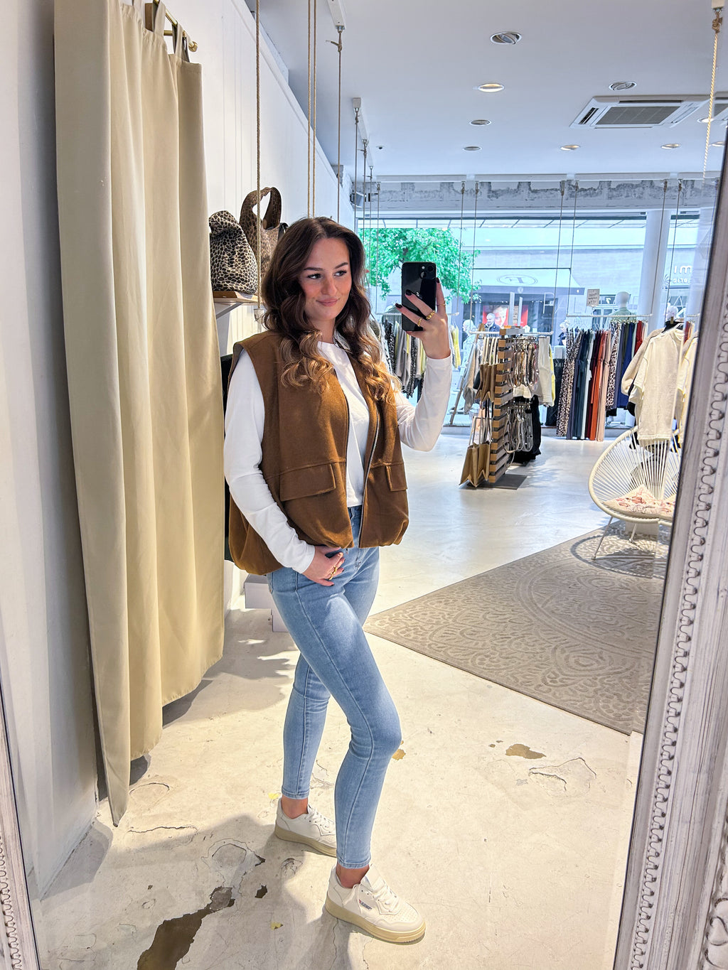 Ein Basic-Teil für alle Fälle. Mit der Filz Weste bist du nicht nur top gekleidet, sondern auch kuschelig warm unterwegs. Perfekt geeignet für kalte Wintertage und lässige Abende mit deinen Mädels.