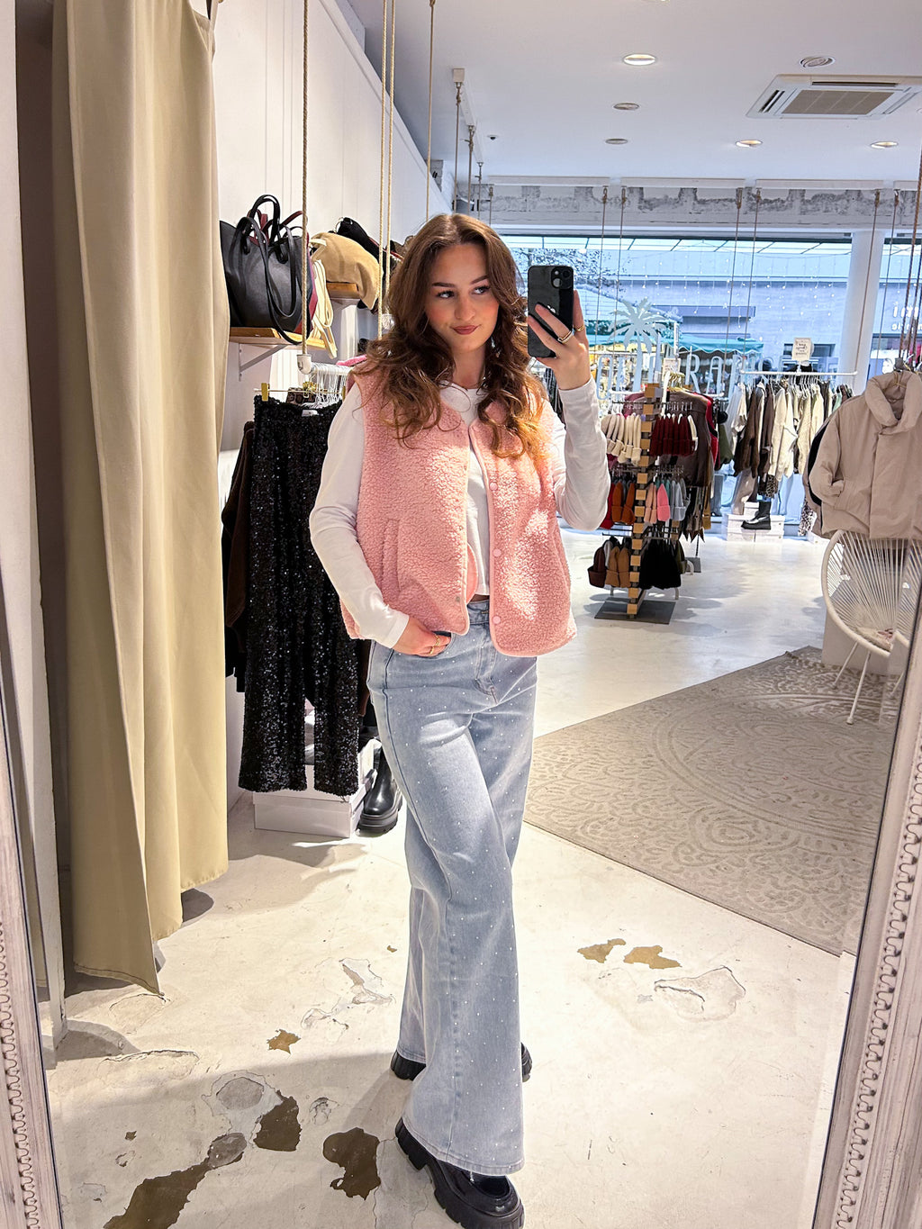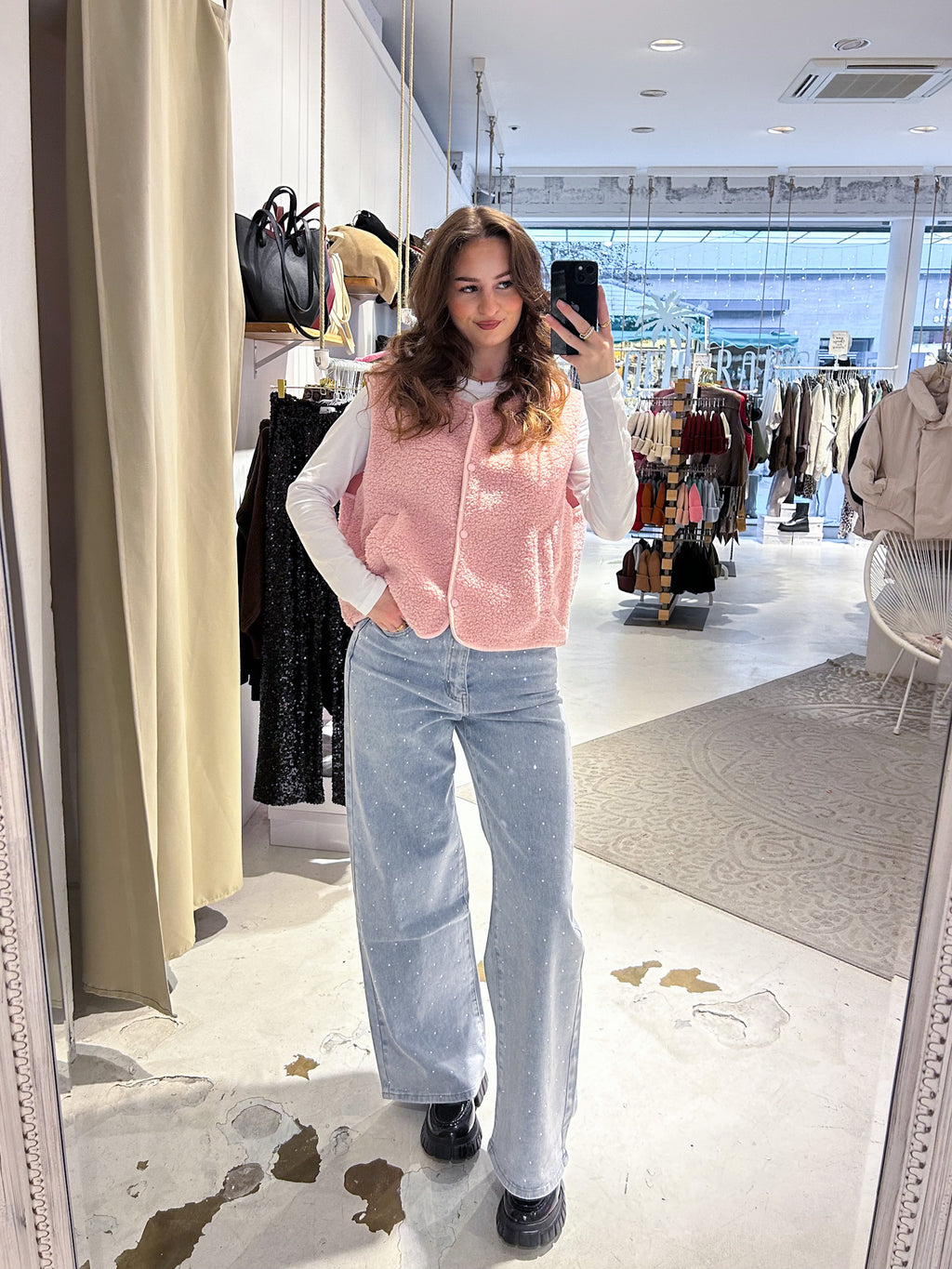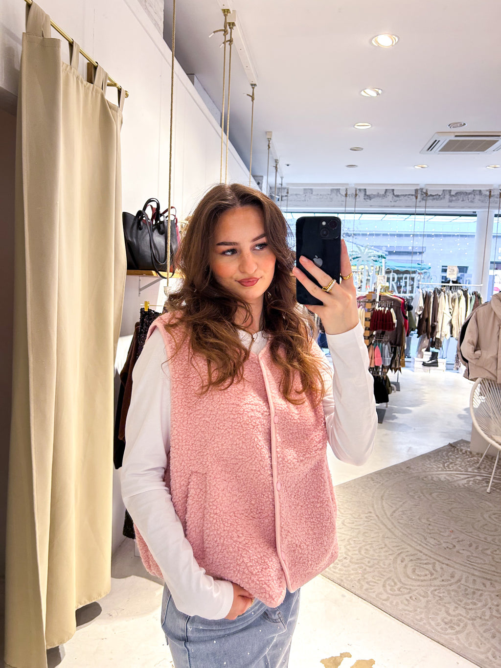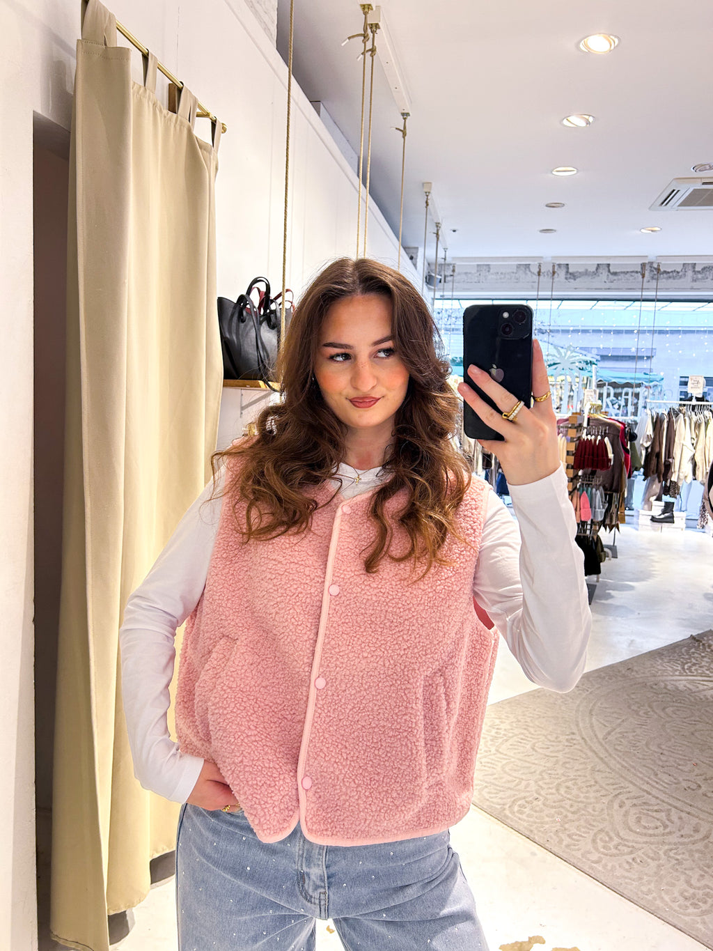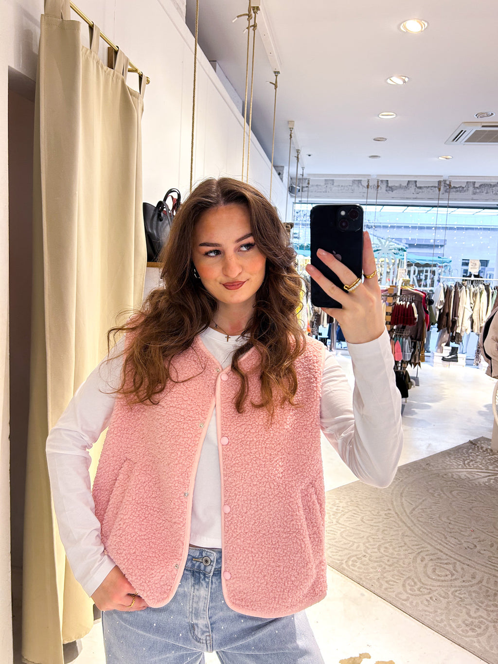 Kurze Teddy Weste mit Knopfleiste Rosa