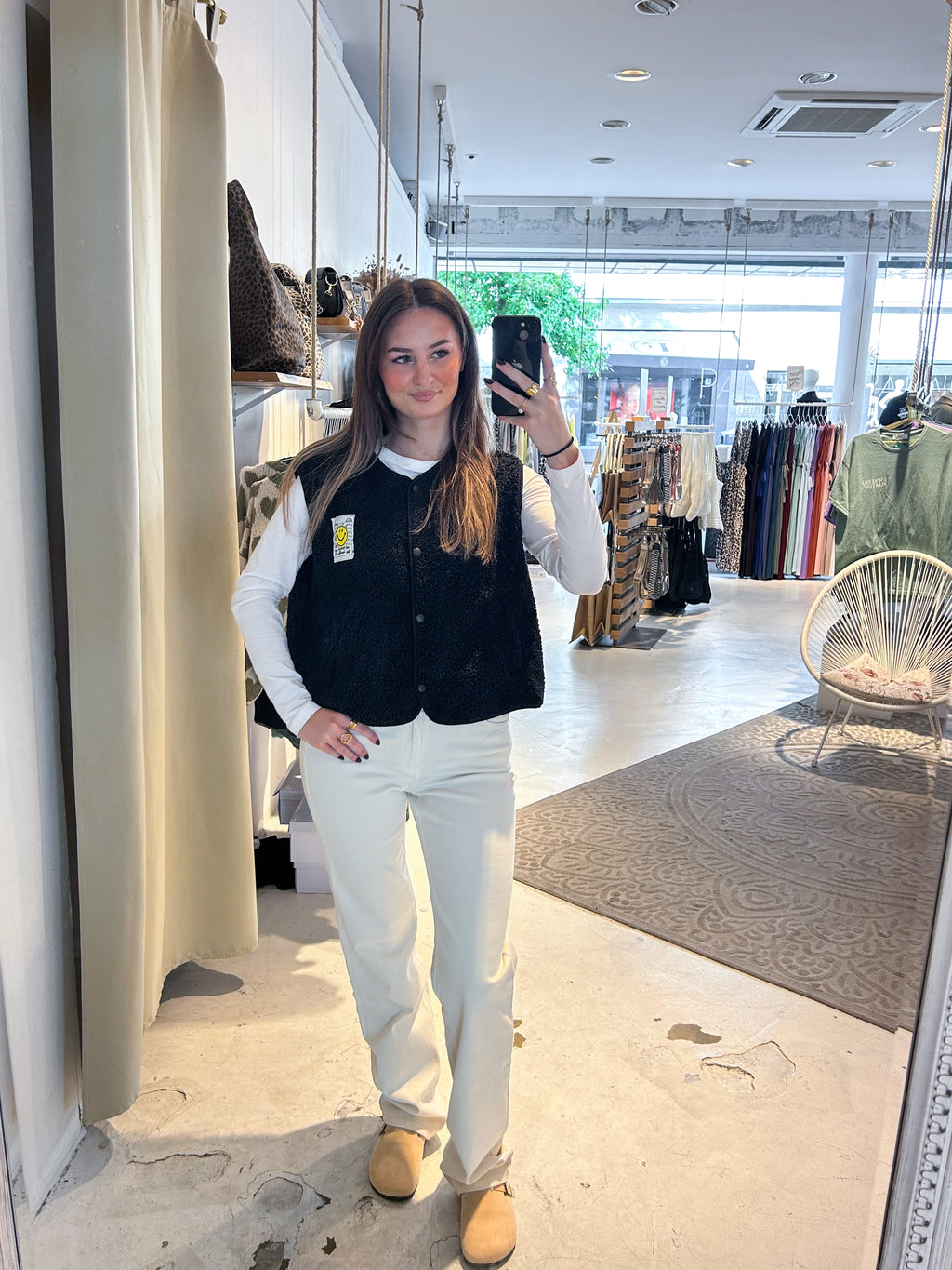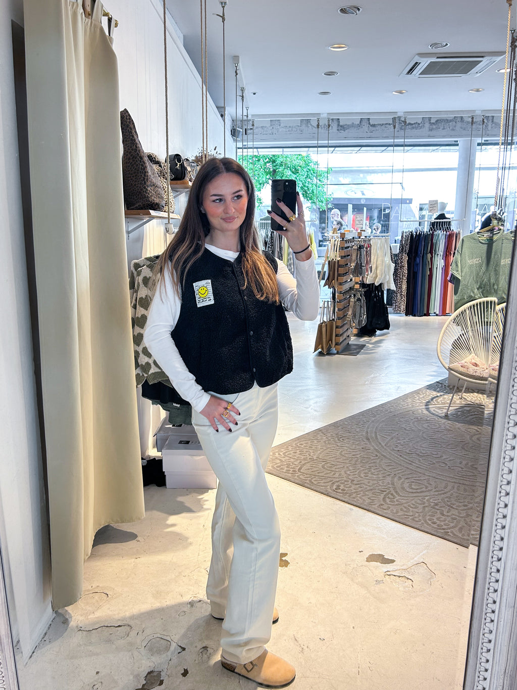 Ein Basic-Teil für alle Fälle. Mit der Teddy Weste bist du nicht nur top gekleidet, sondern auch kuschelig warm unterwegs. Perfekt geeignet für kalte Wintertage und lässige Abende mit deinen Mädels.