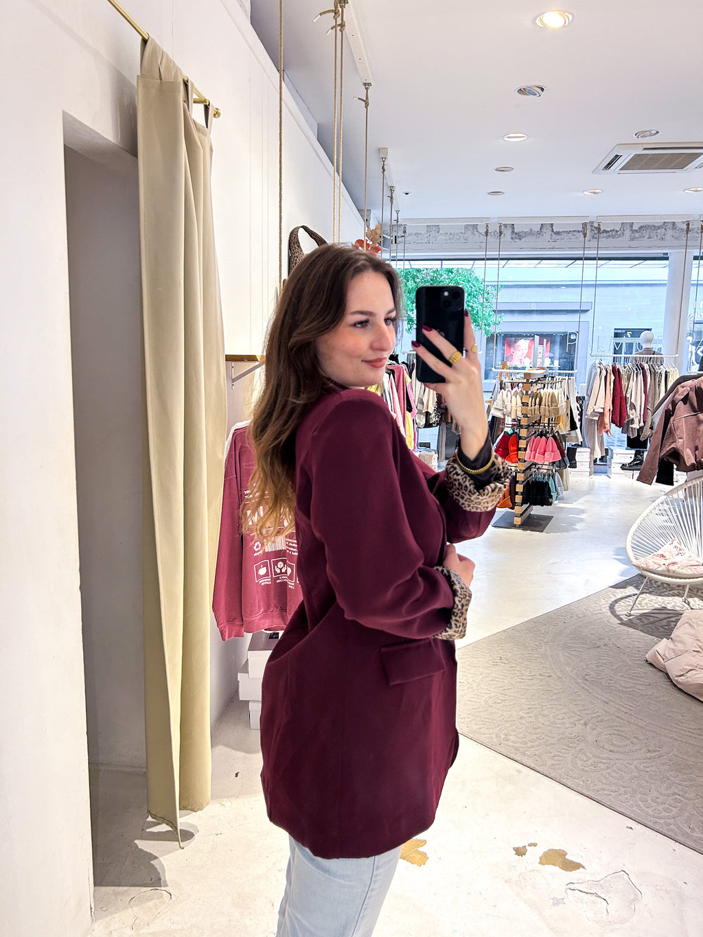 Oversized Blazer mit Leomuster Weinrot