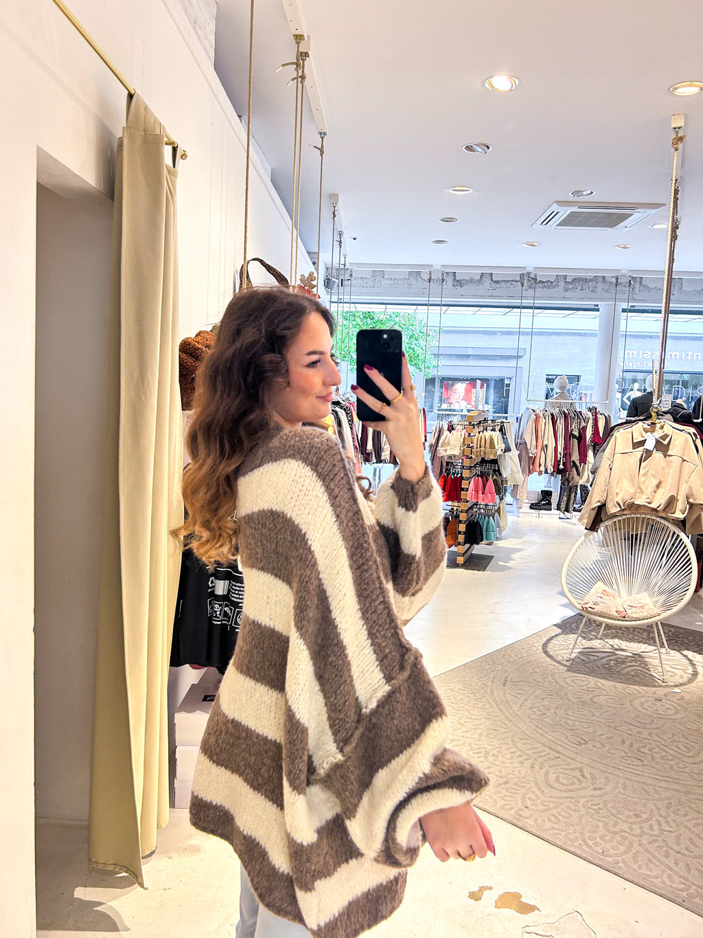 Oversized Strickpullover Gestreift mit Stehkragen Braun