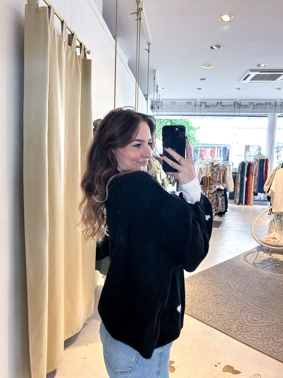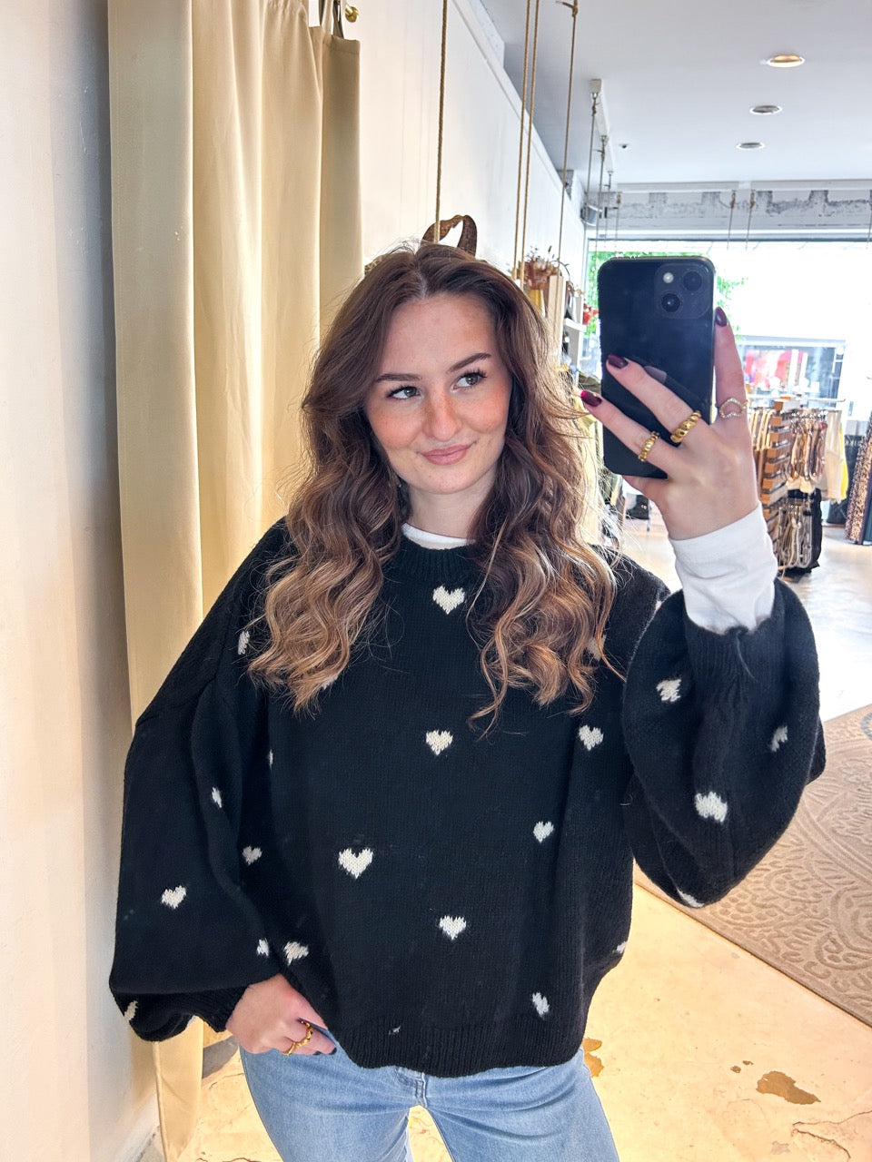Oversized Strickpullover mit kleinen Herzen Schwarz/Weiß