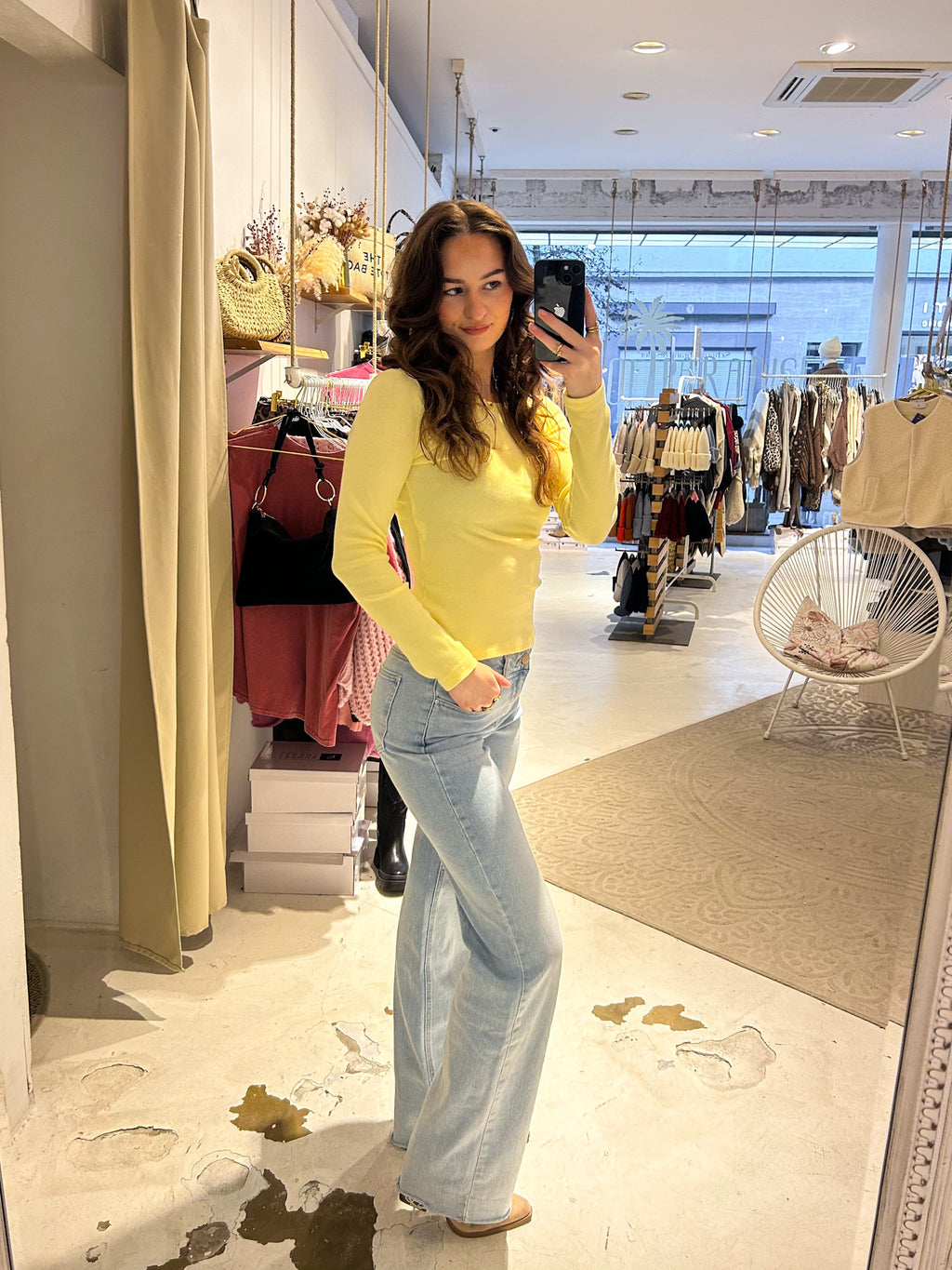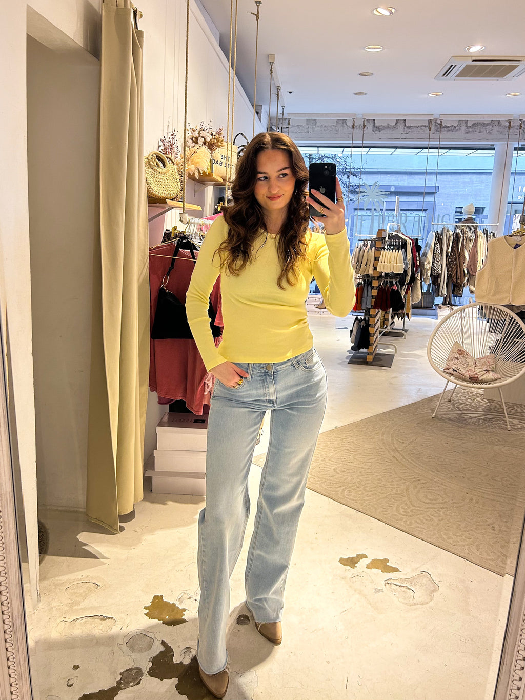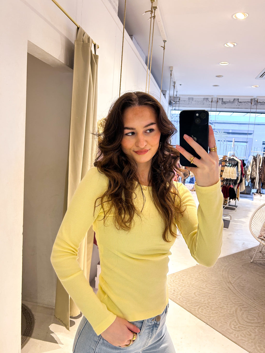 Ribbed Langarm Shirt Gelb