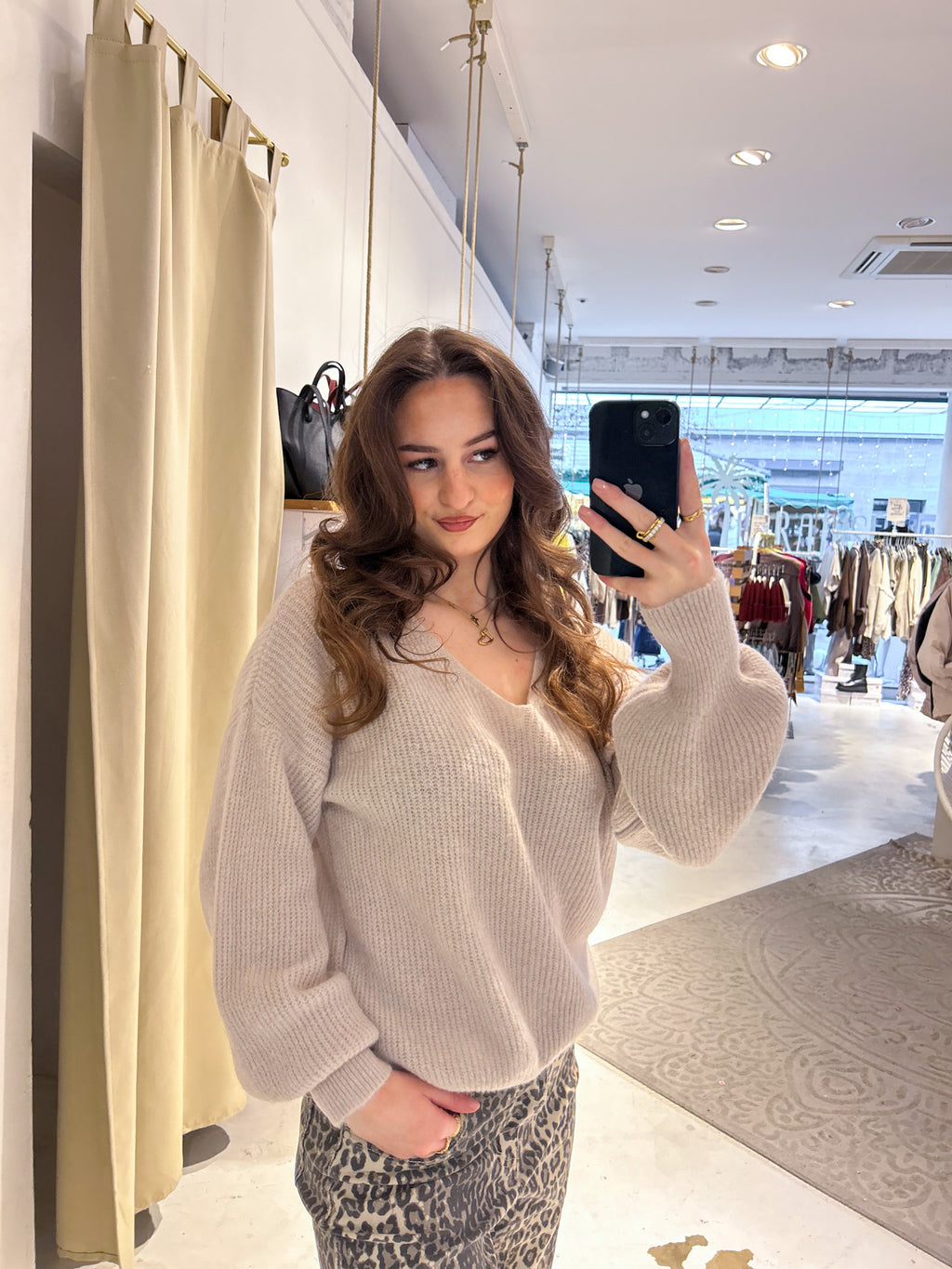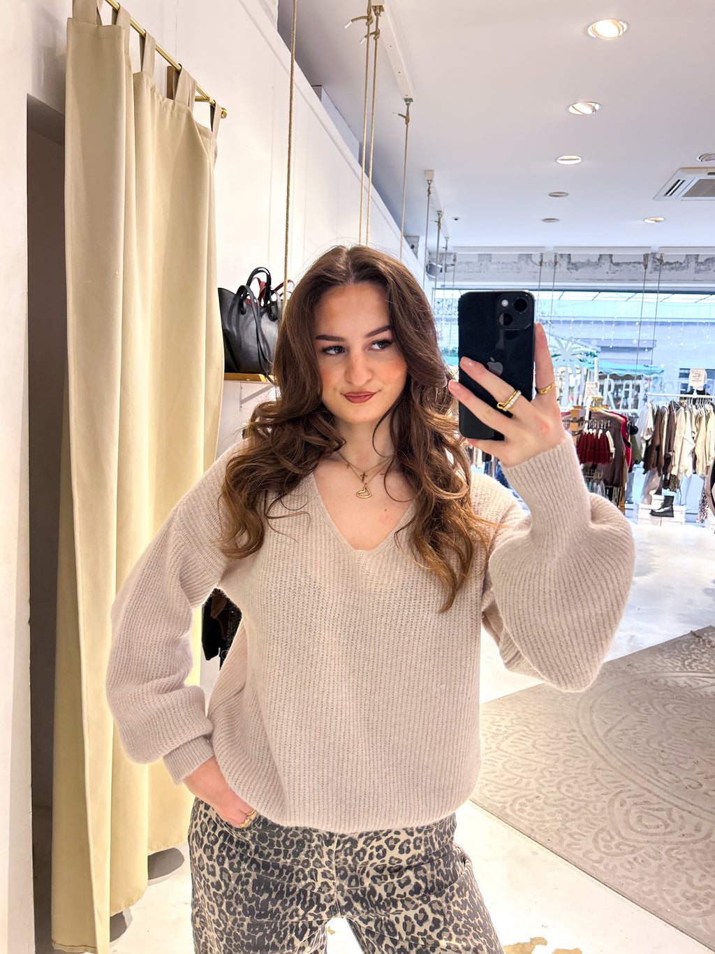 Strickpullover mit V-Ausschnitt Beige