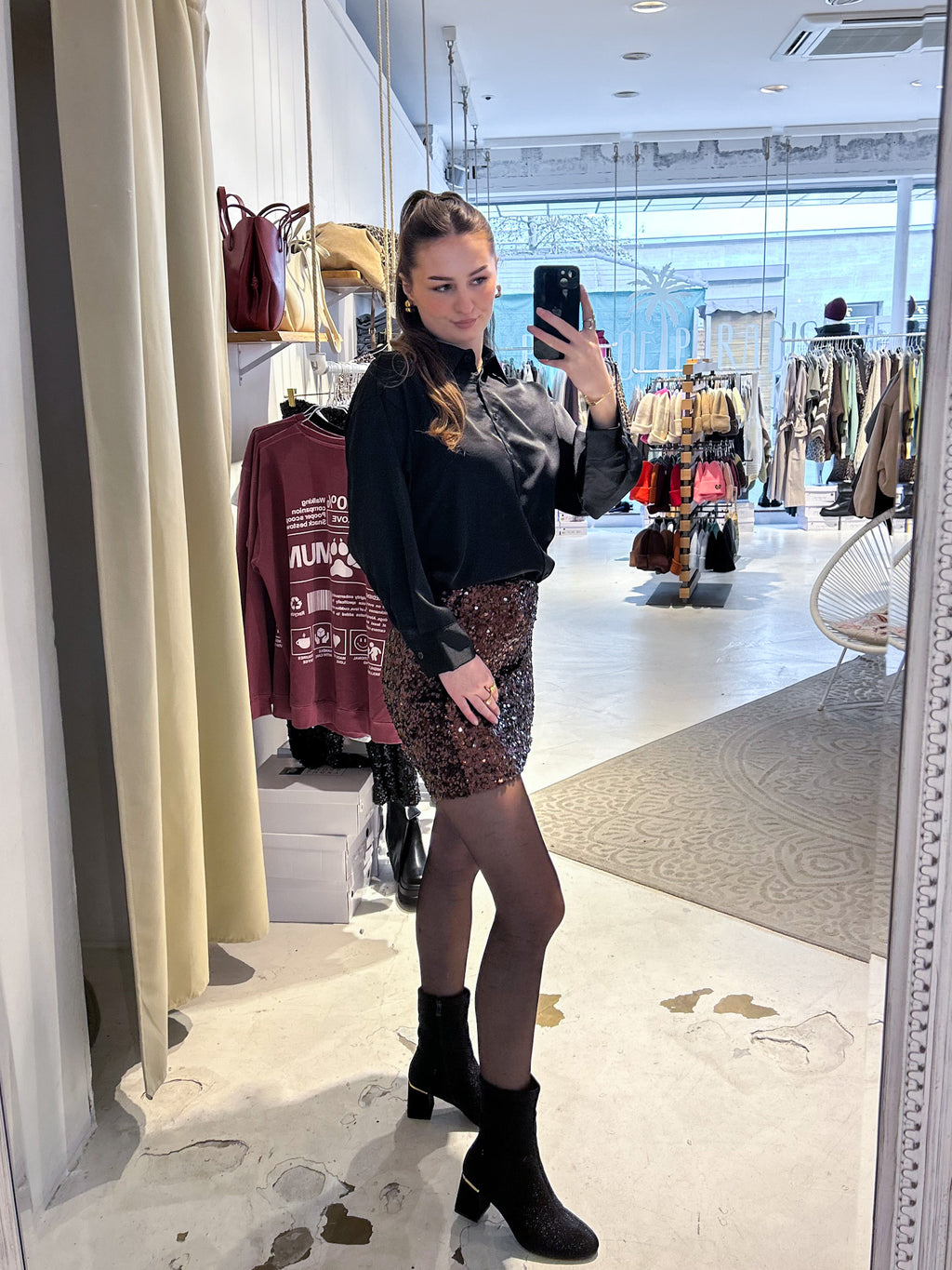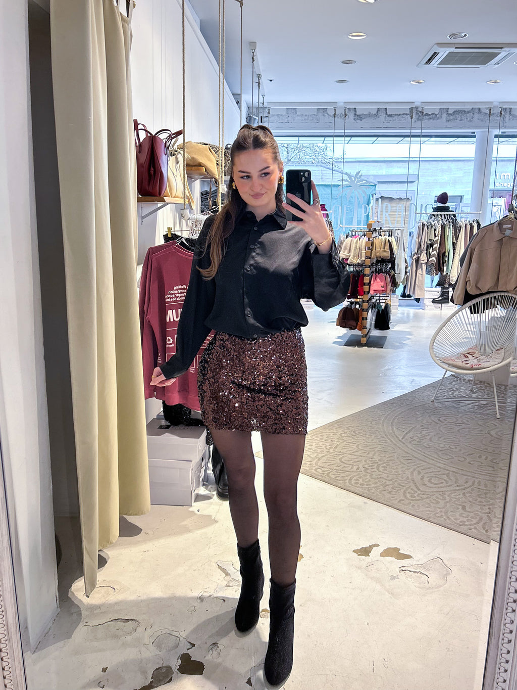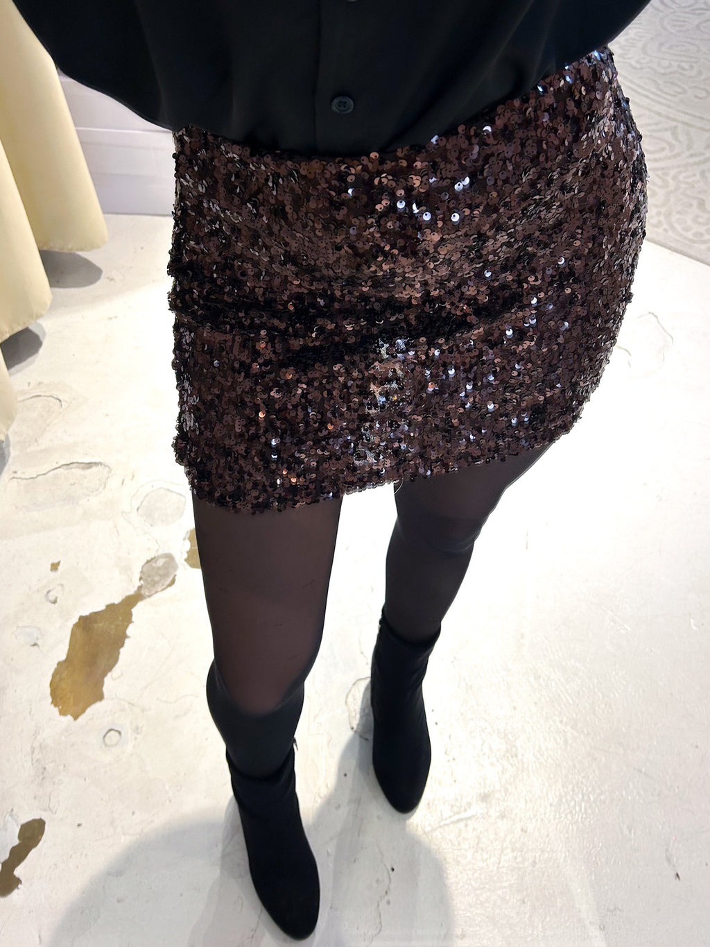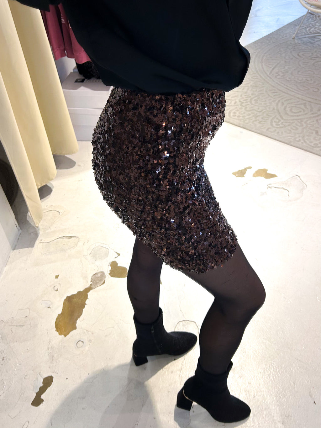 Kurzer Rock mit Pailletten Braun