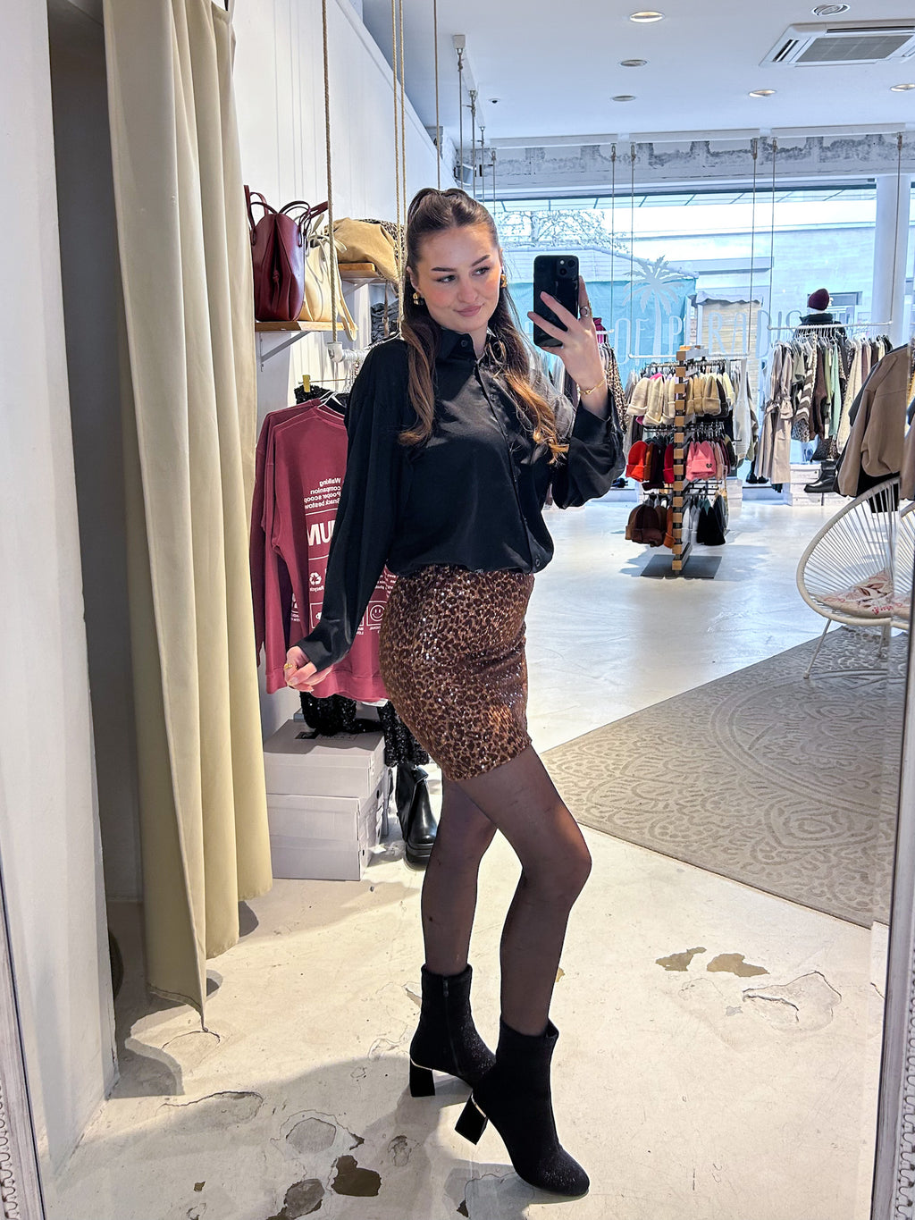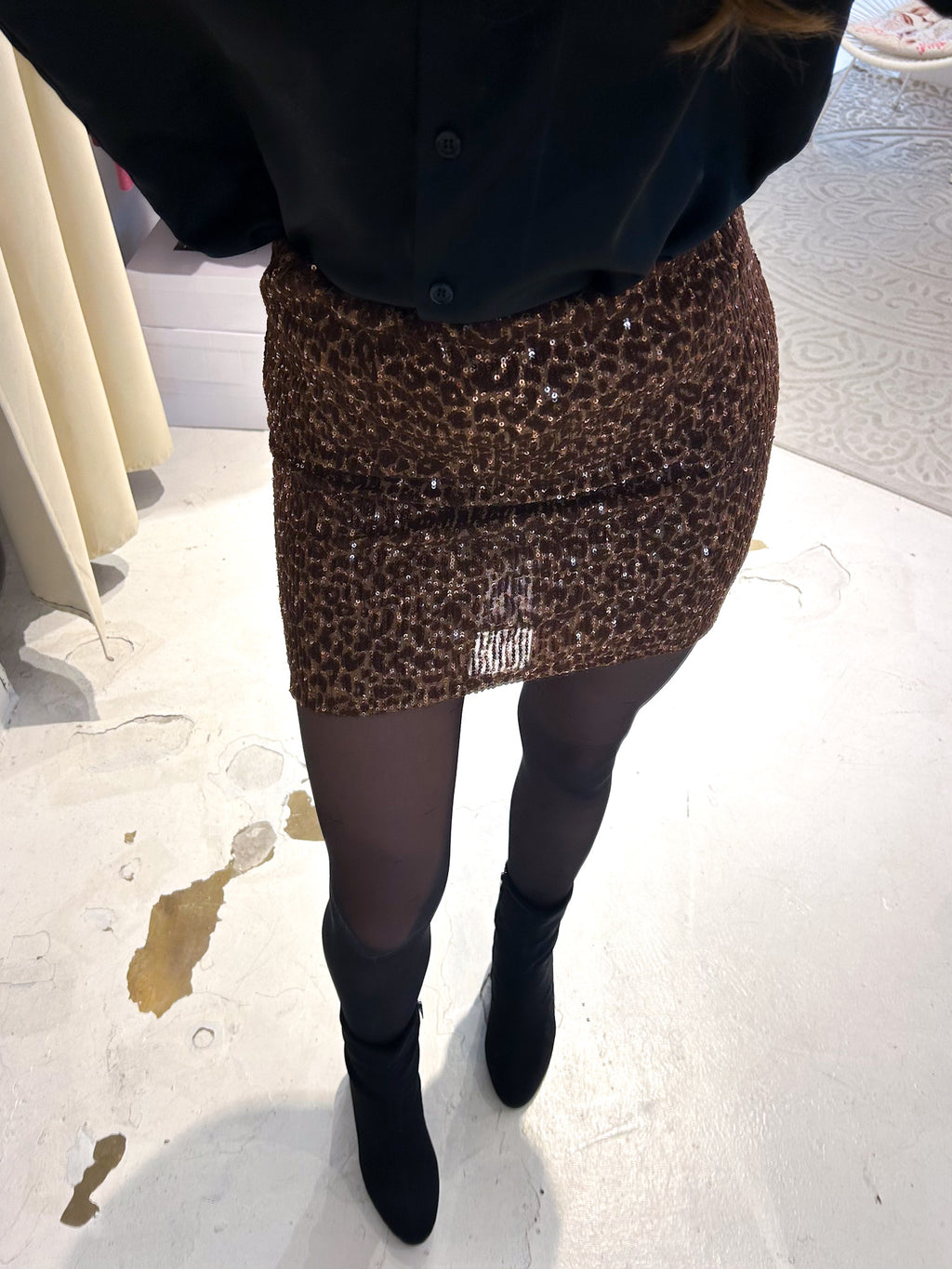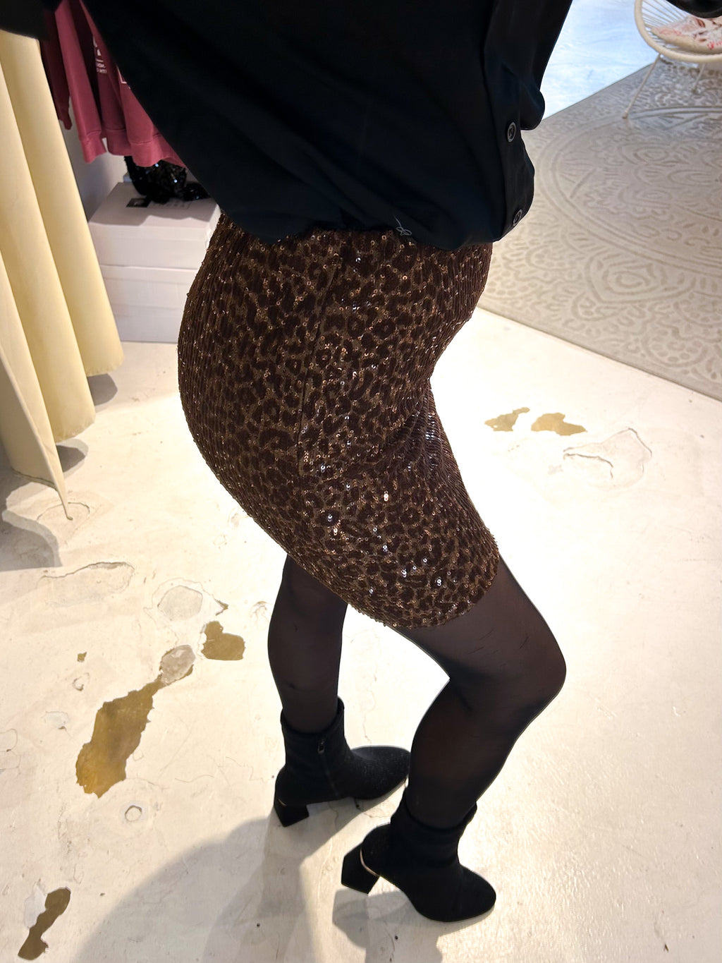 Rock mit Pailletten und Leomuster Braun