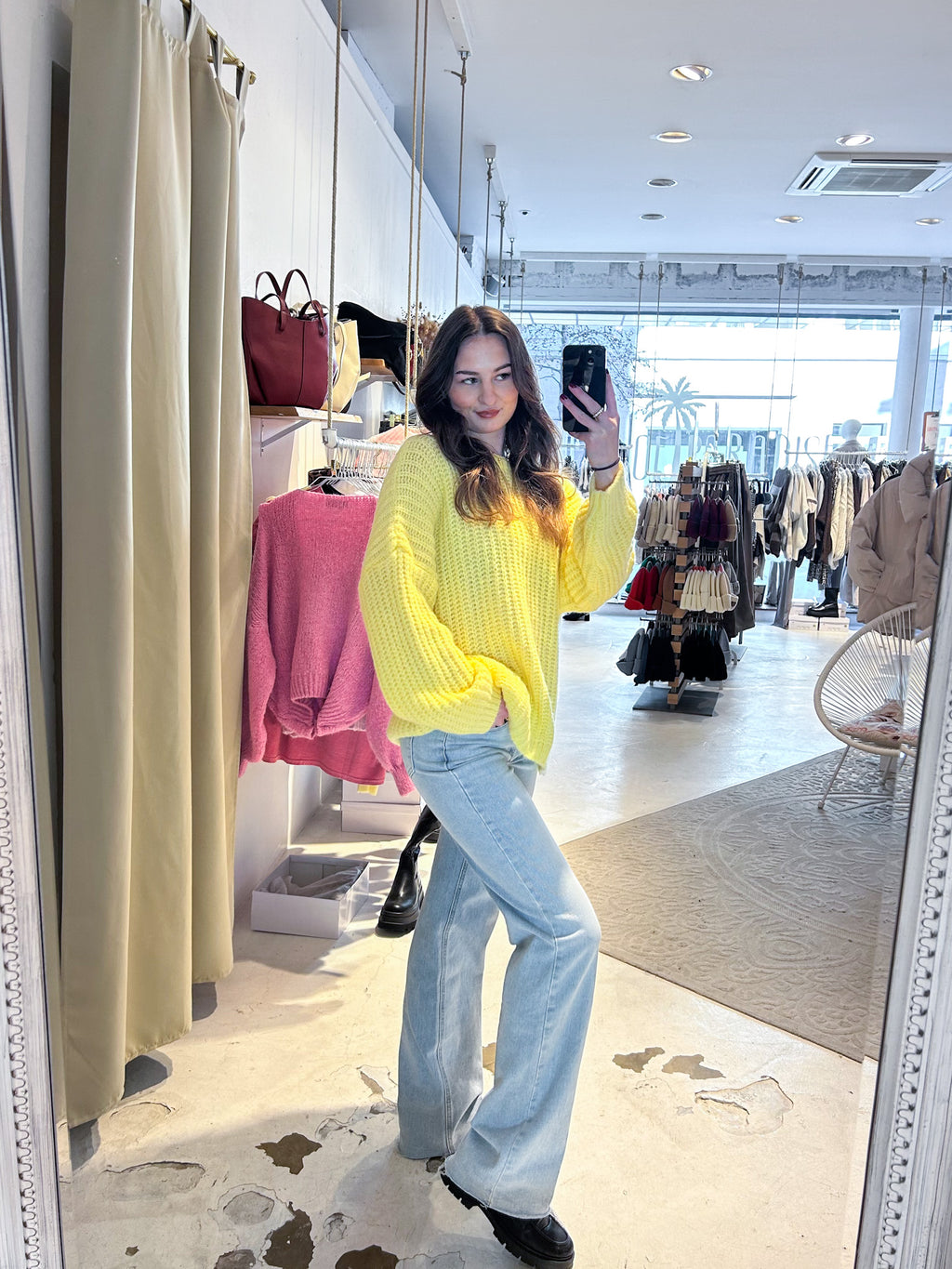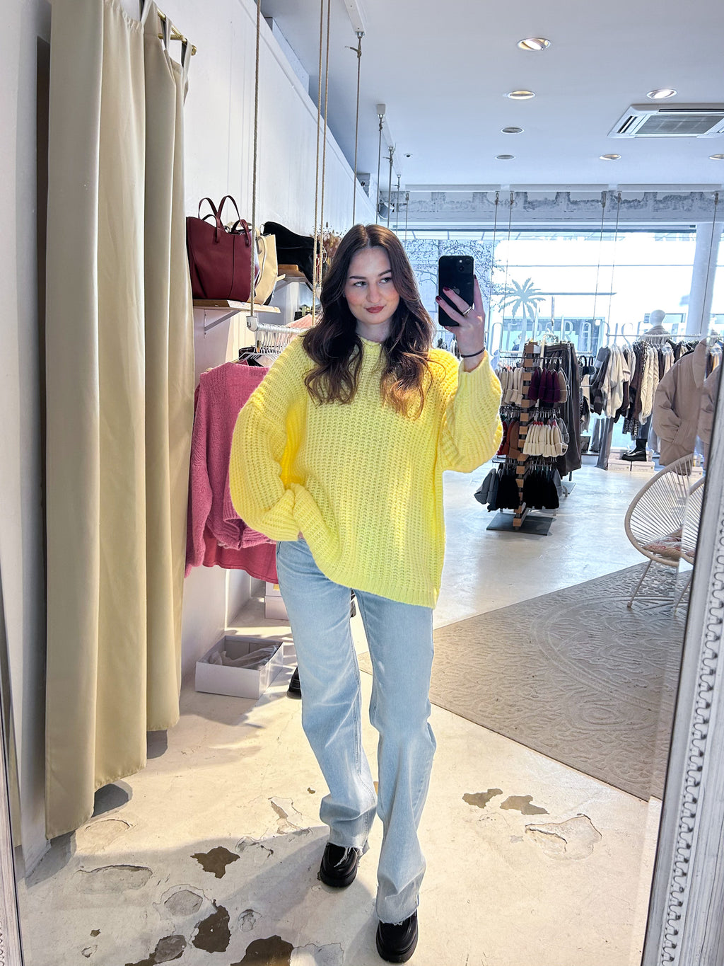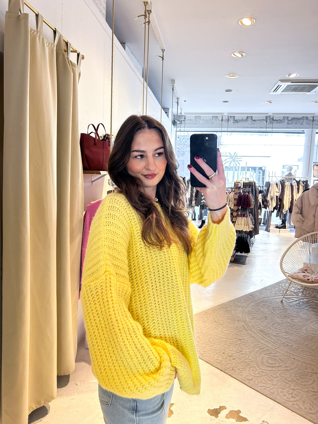 Grober Strickpullover Gelb