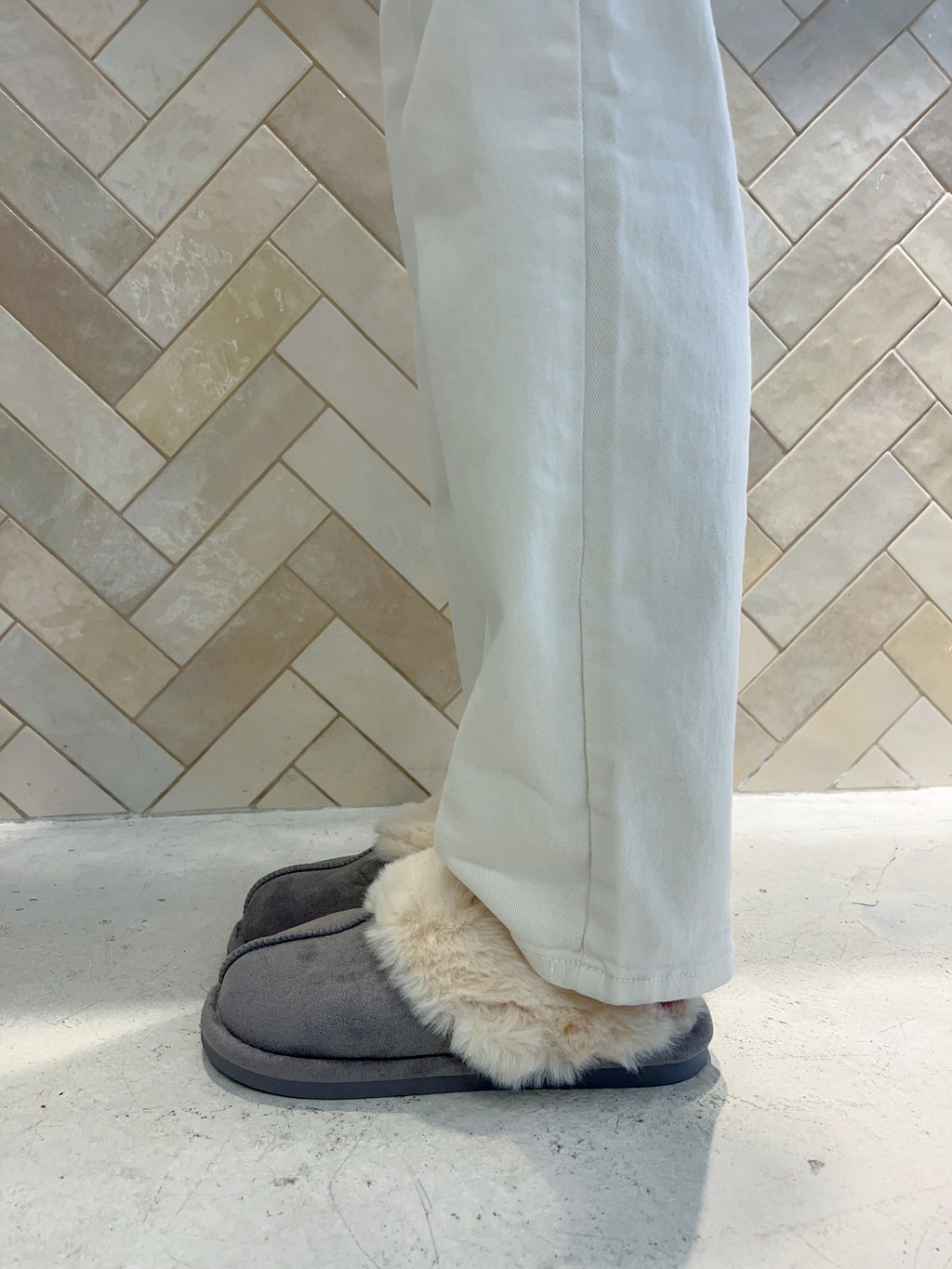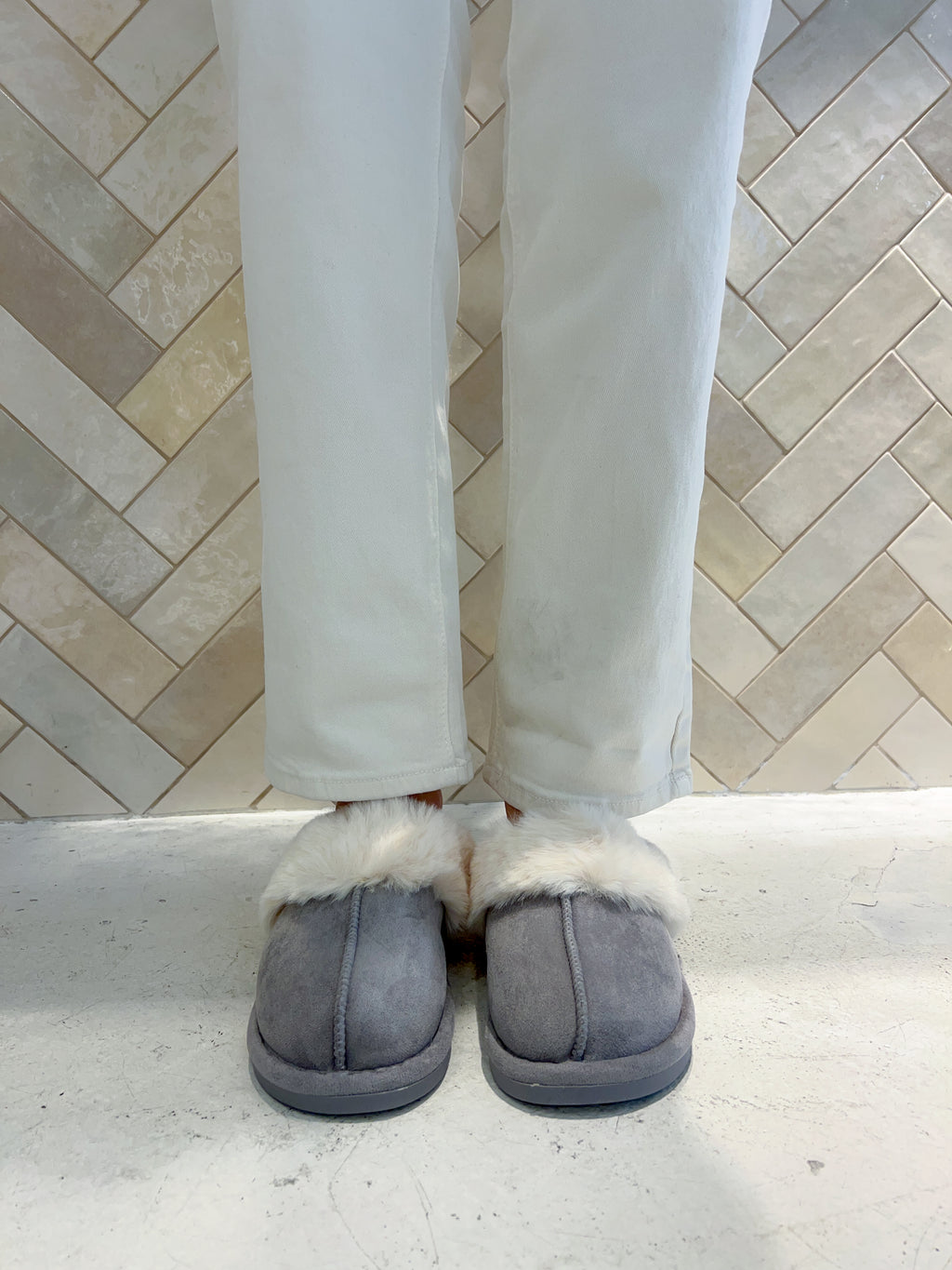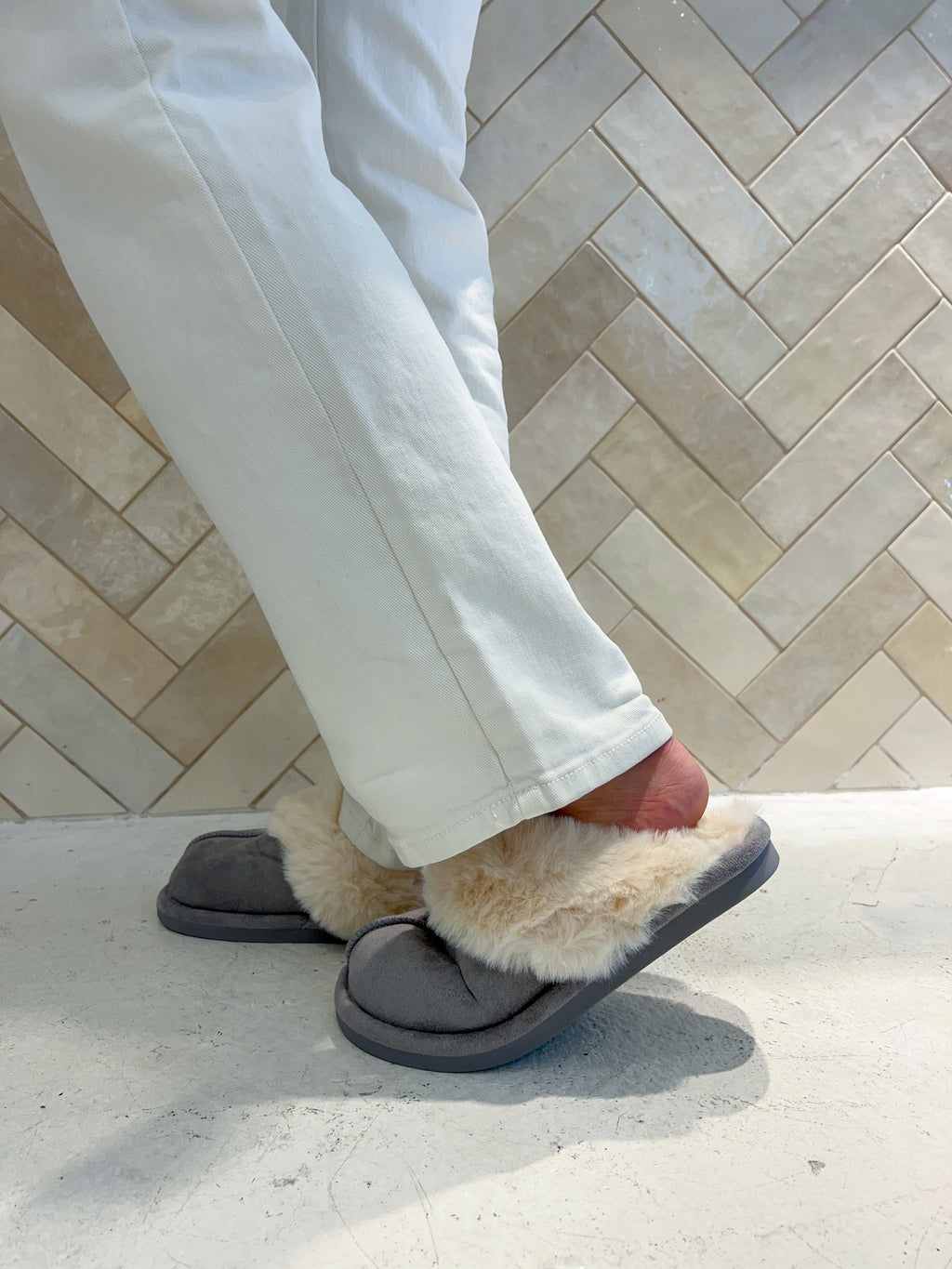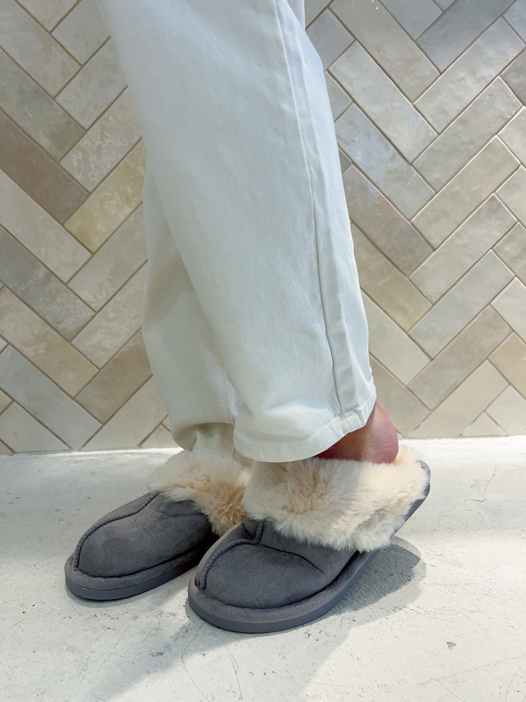 Hausschuhe mit Kunstfell Grau