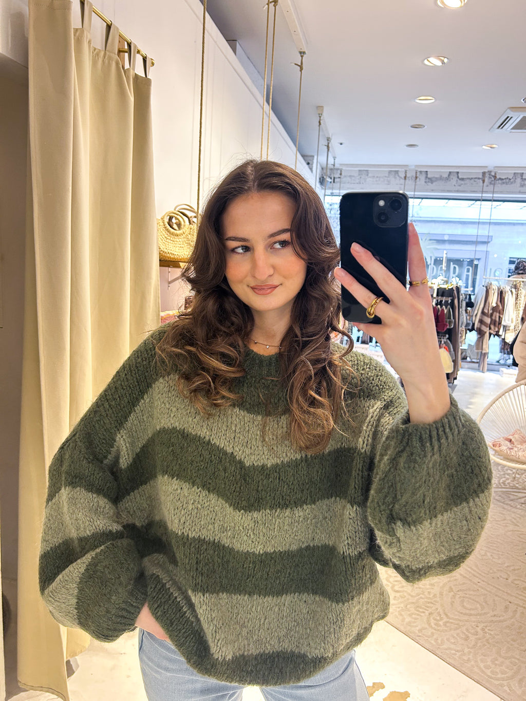 Oversized Strickpullover Gestreift Olive