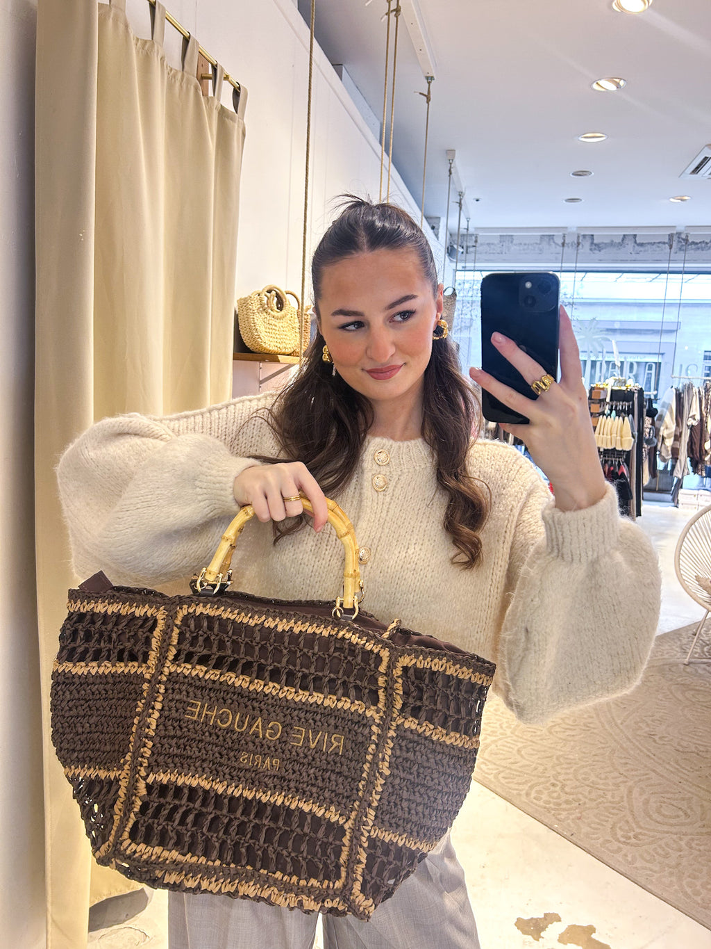 Geflochtener Bast-Shopper Braun