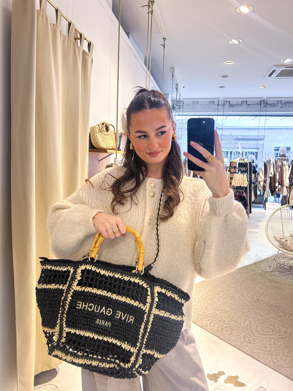 Geflochtener Bast-Shopper Schwarz