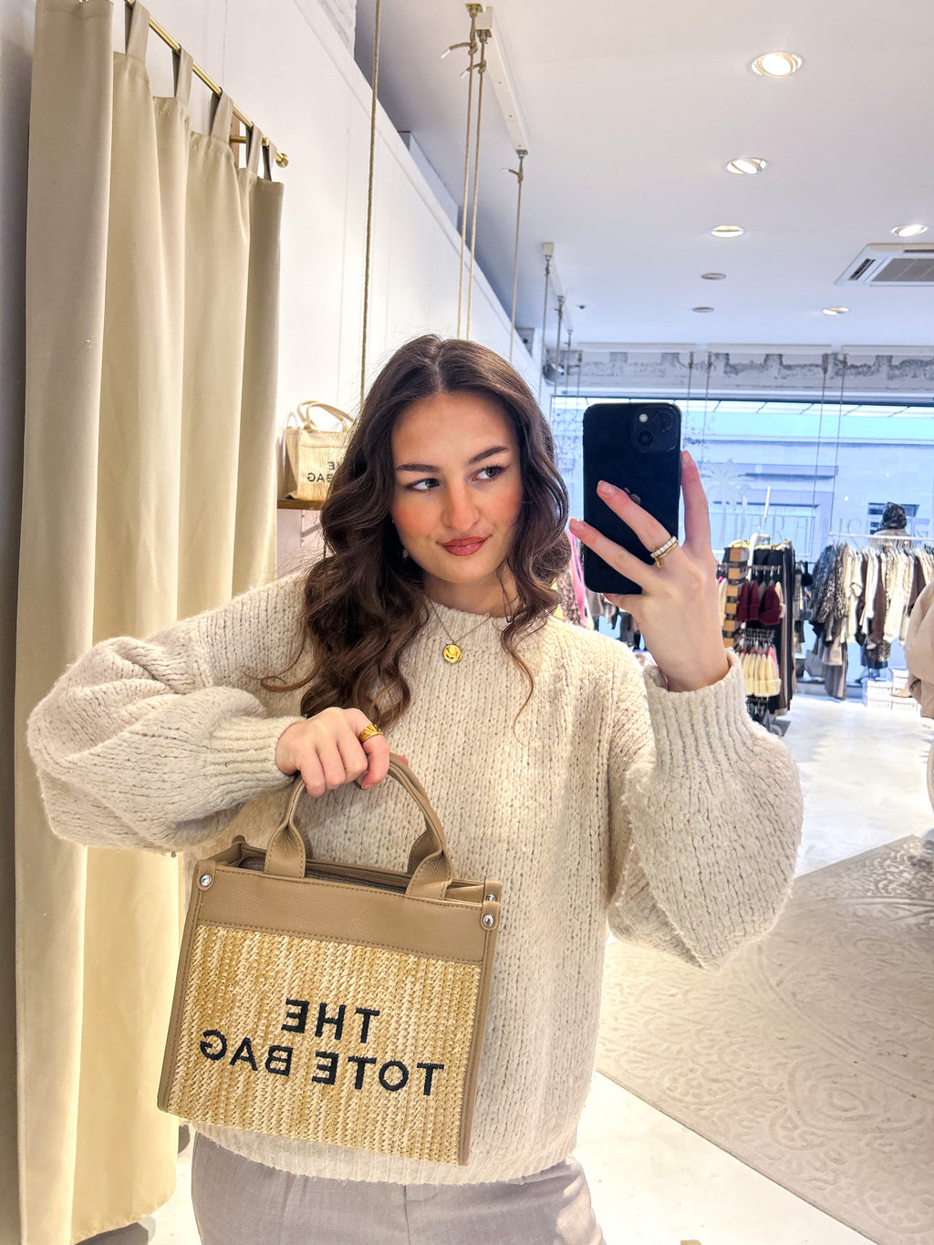 Kleine Tote Bag aus Bast Taupe