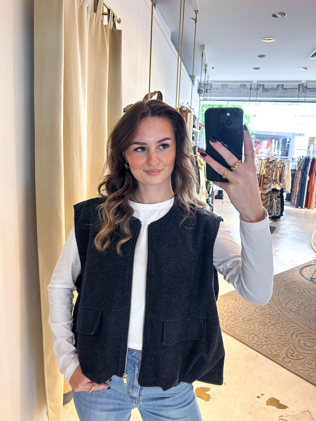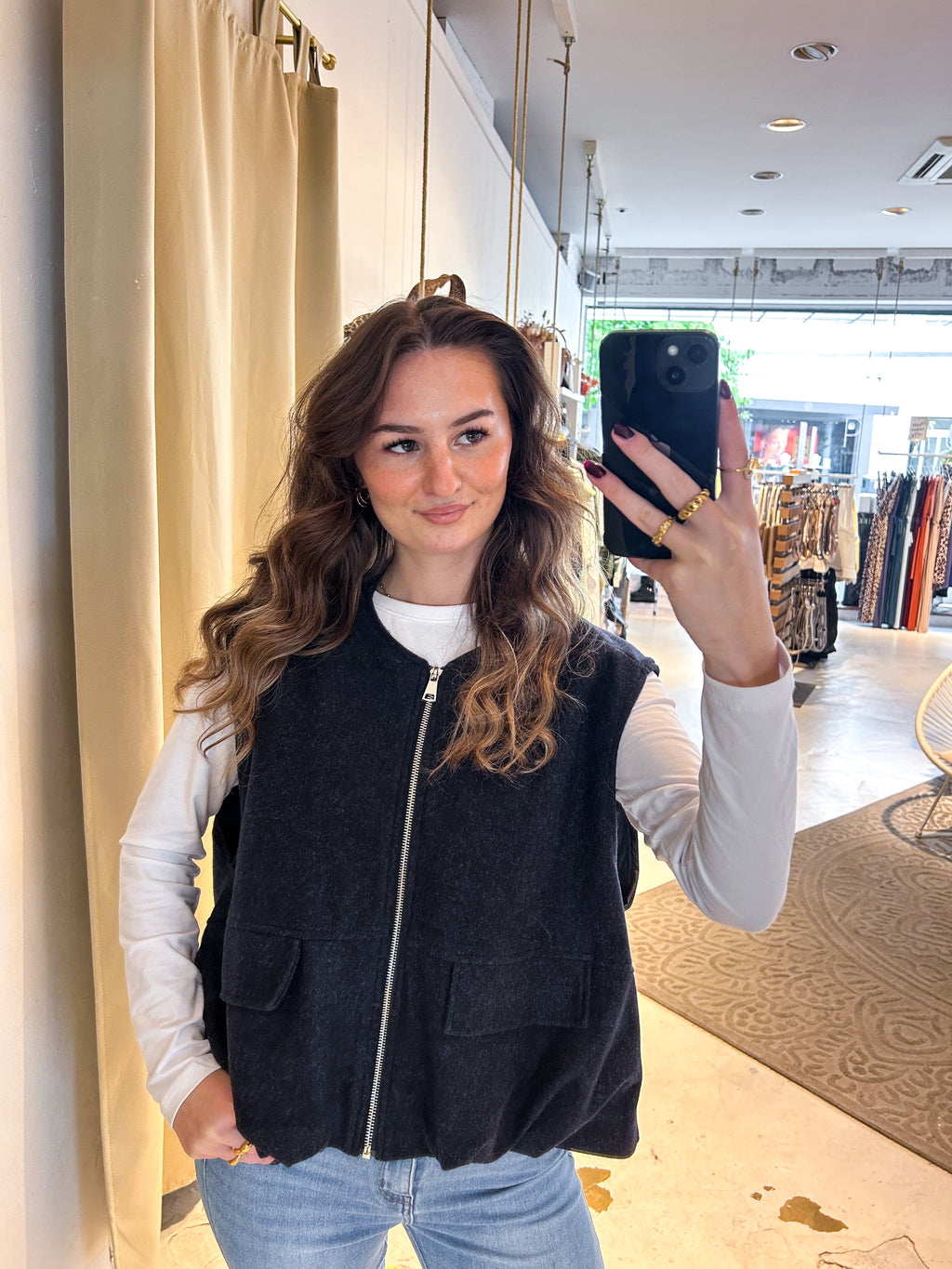 Ein Basic-Teil für alle Fälle. Mit der Filz Weste bist du nicht nur top gekleidet, sondern auch kuschelig warm unterwegs. Perfekt geeignet für kalte Wintertage und lässige Abende mit deinen Mädels.