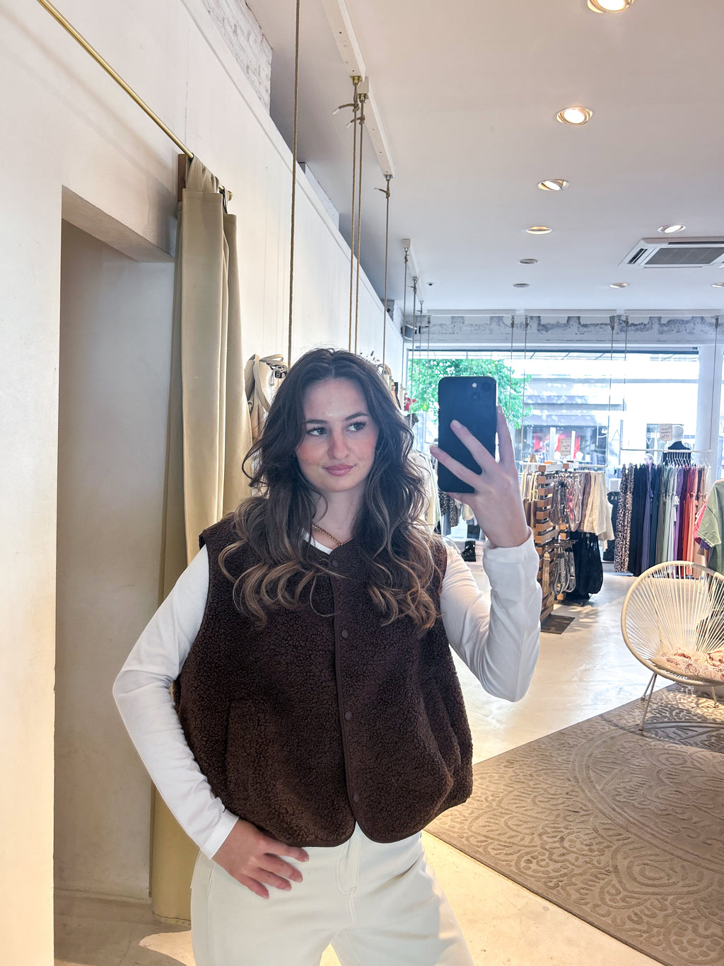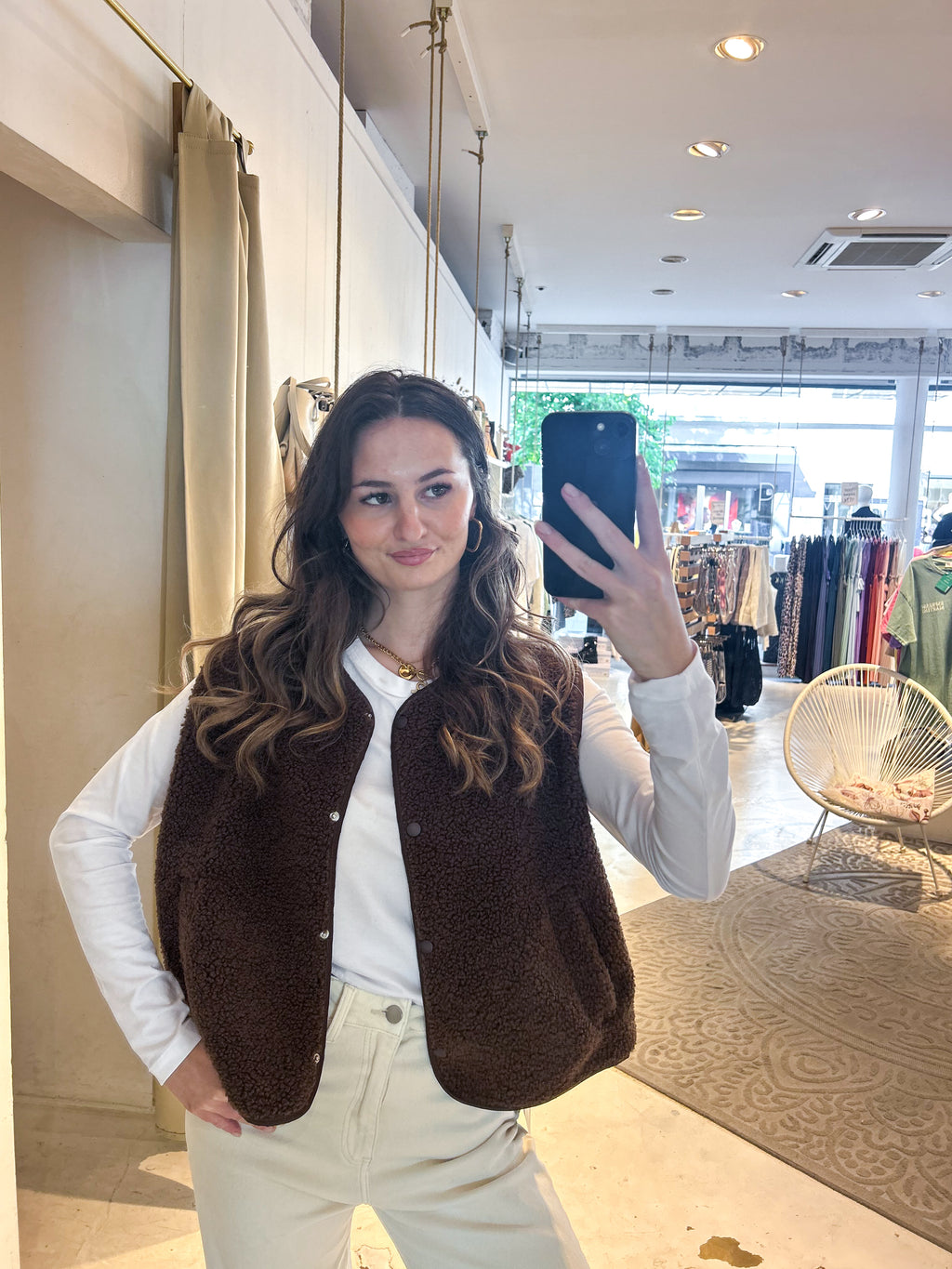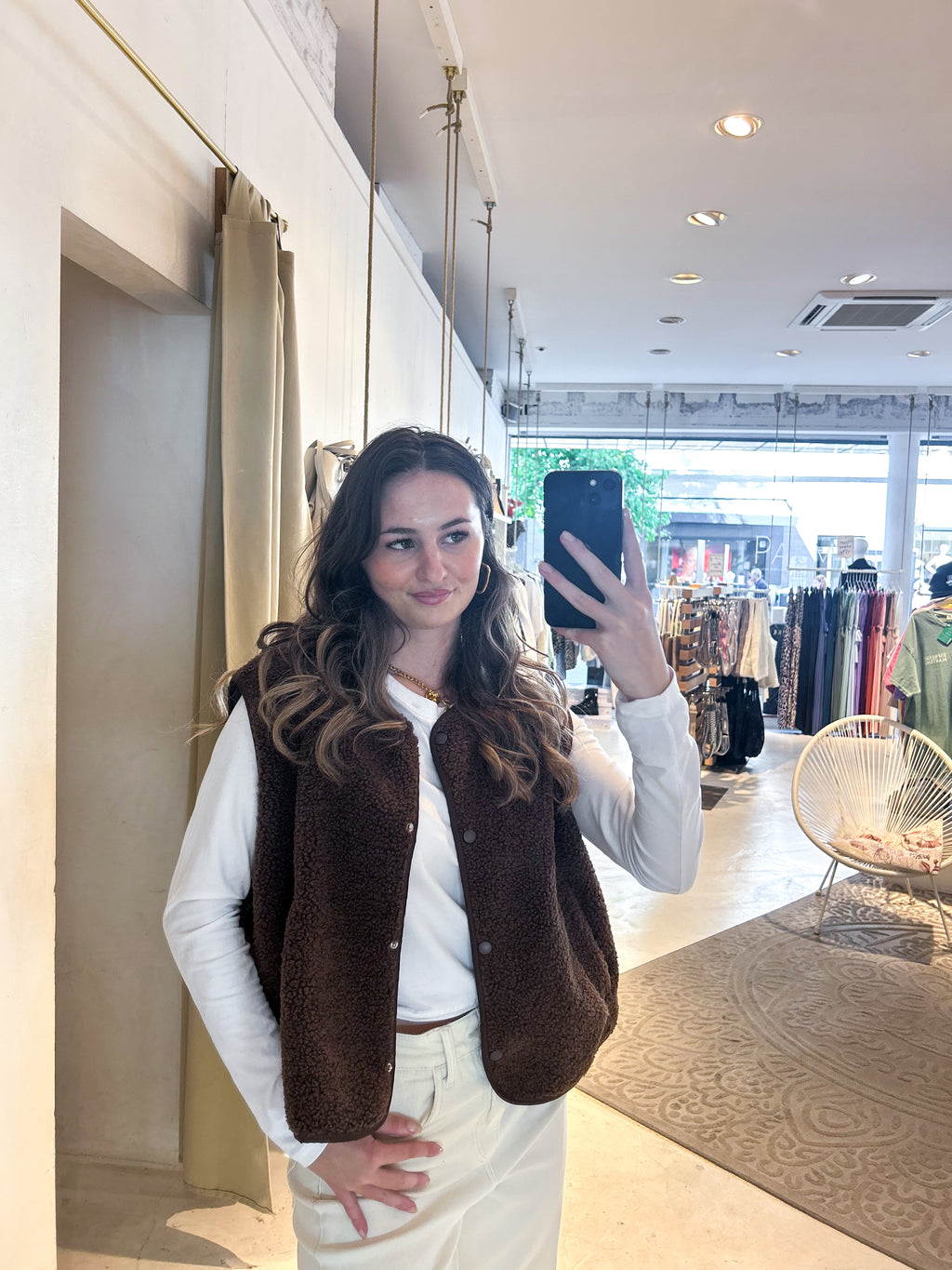 Ein Basic-Teil für alle Fälle. Mit der Teddy Weste bist du nicht nur top gekleidet, sondern auch kuschelig warm unterwegs. Perfekt geeignet für kalte Wintertage und lässige Abende mit deinen Mädels. Sie überzeugt mit softem Furry-Look und kompaktem Fit. Etwas kürzer geschnitten und figurbetonter als klassische Relaxed-Modelle, ist sie ein vielseitiges Layering-Piece mit cozy Streetwear-Vibe.