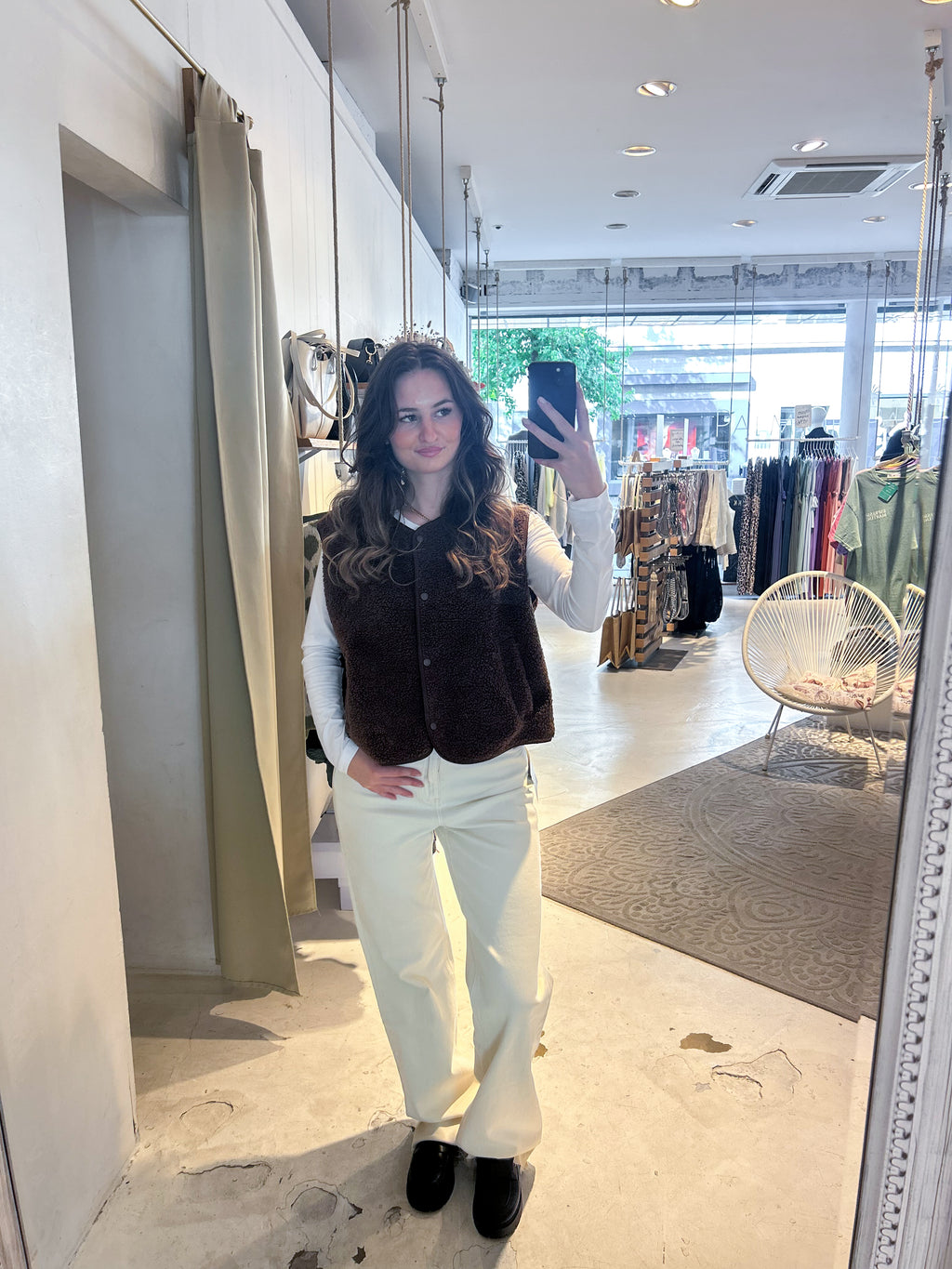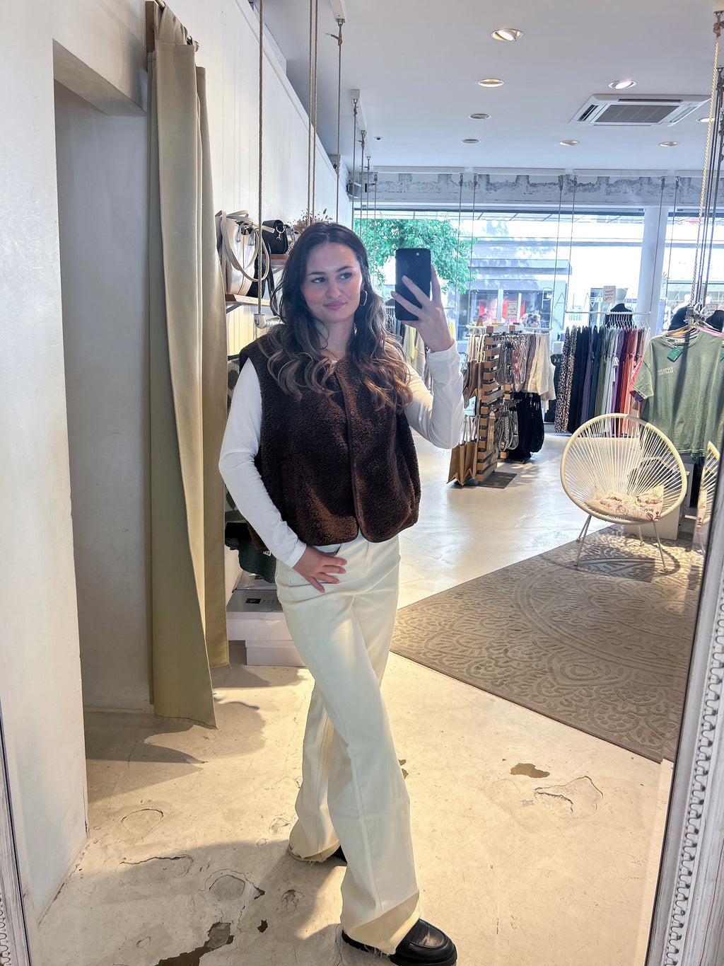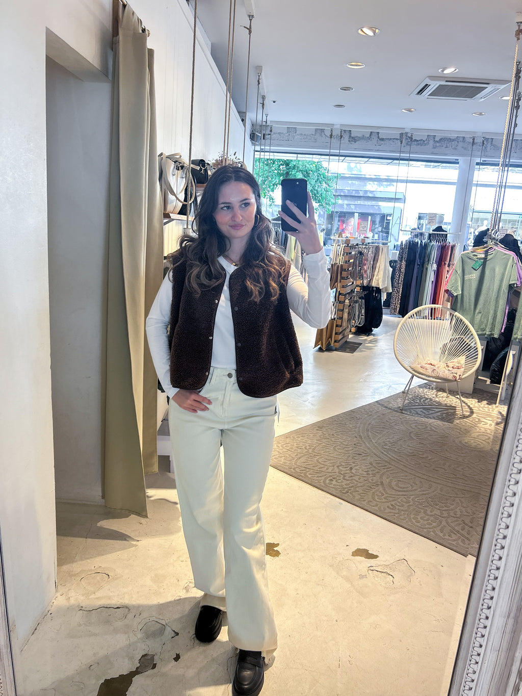 Ein Basic-Teil für alle Fälle. Mit der Teddy Weste bist du nicht nur top gekleidet, sondern auch kuschelig warm unterwegs. Perfekt geeignet für kalte Wintertage und lässige Abende mit deinen Mädels. Sie überzeugt mit softem Furry-Look und kompaktem Fit. Etwas kürzer geschnitten und figurbetonter als klassische Relaxed-Modelle, ist sie ein vielseitiges Layering-Piece mit cozy Streetwear-Vibe.