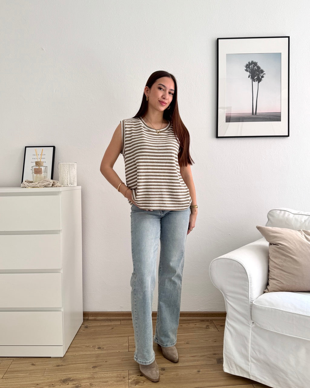 Gestreiftes Strick Top Taupe