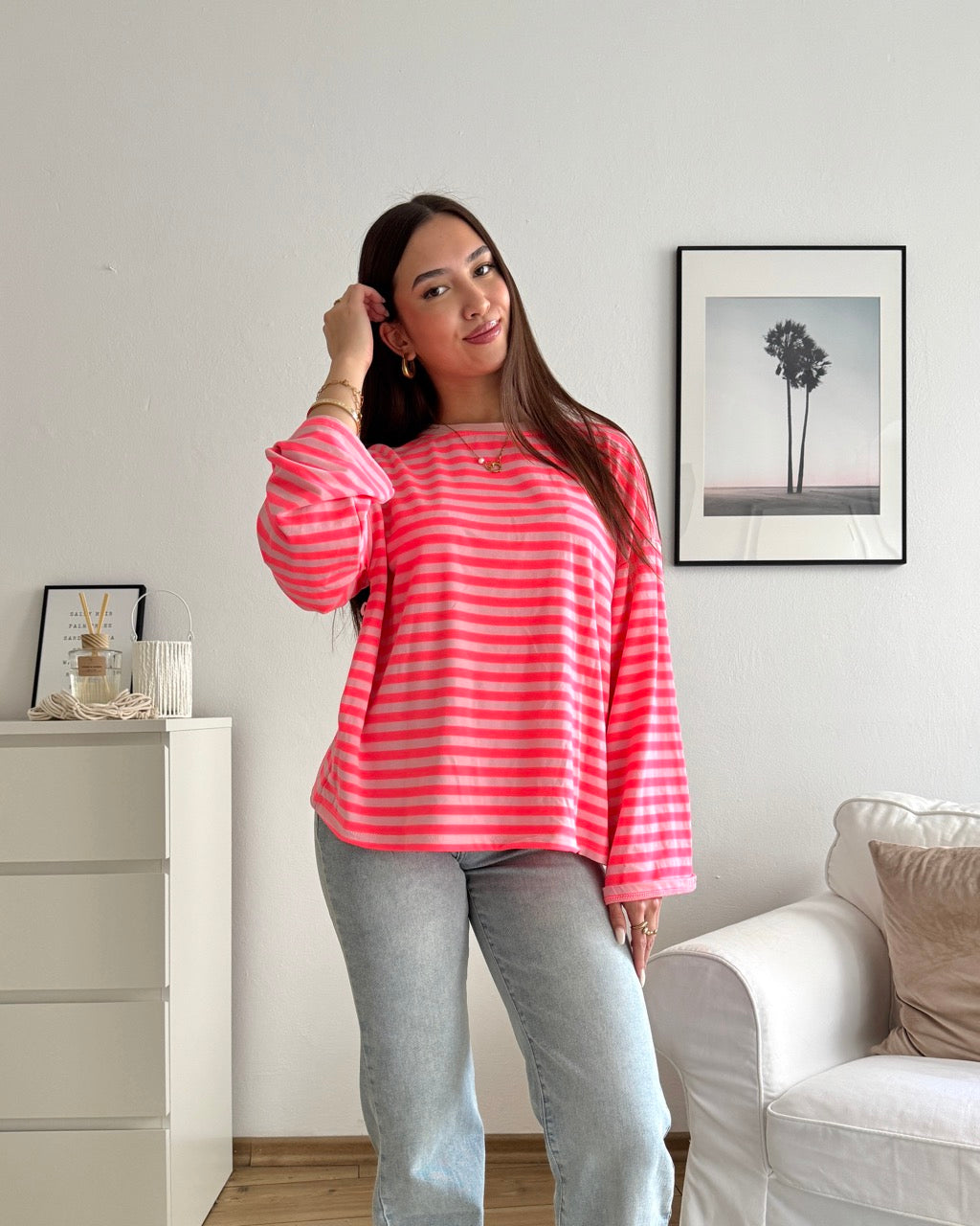 Longsleeve mit Streifen Rosa/Pink