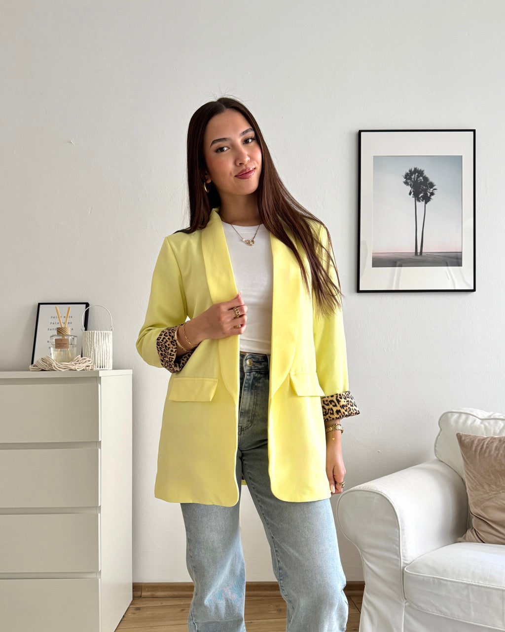 Ein lässiger Begleiter für jede Jahreszeit im modischen Leo-Look. Mit diesem stylischen Blazer im geraden Schnitt und trendigem Schalkragen bist du immer perfekt gestylt. Die aufgenähten Taschen verleihen dem Oversized Blazer auch noch das gewisse Etwas. Egal ob im Büro oder in der Freizeit, mit diesem Blazer setzt du ein modisches Statement.