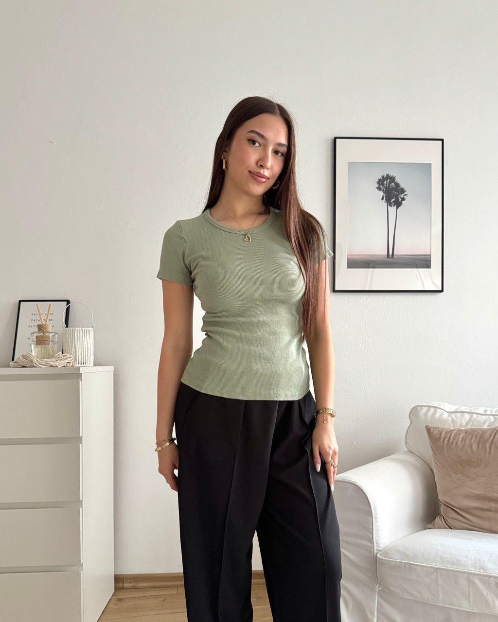 Ribbed Kurzarm Shirt Olive