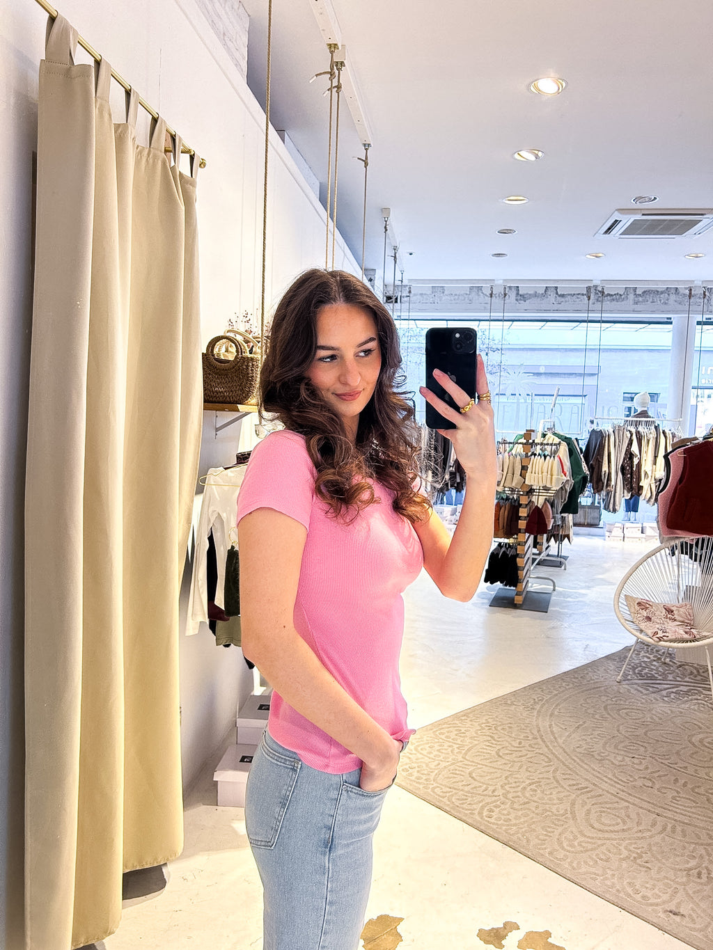 Ribbed Kurzarm Shirt Pink