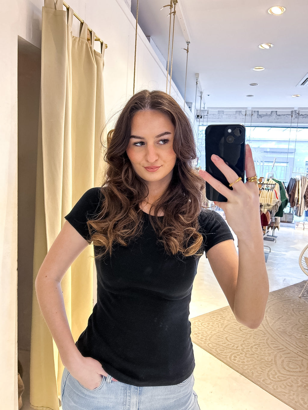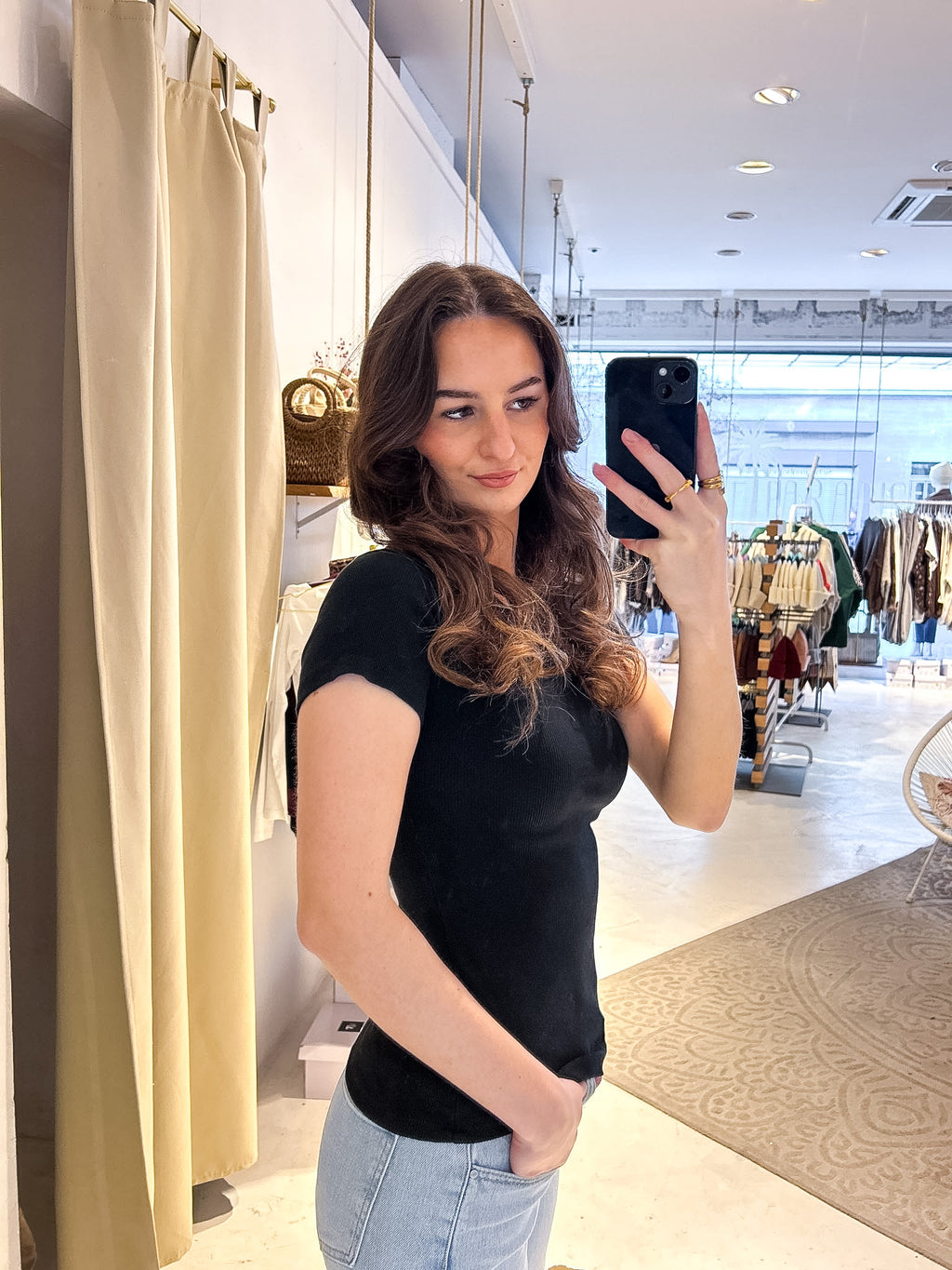 Ribbed Kurzarm Shirt Schwarz
