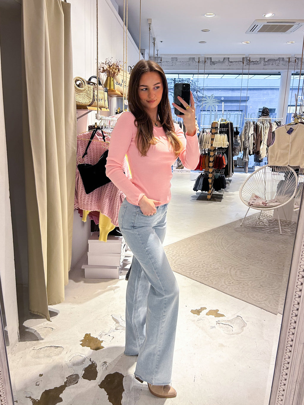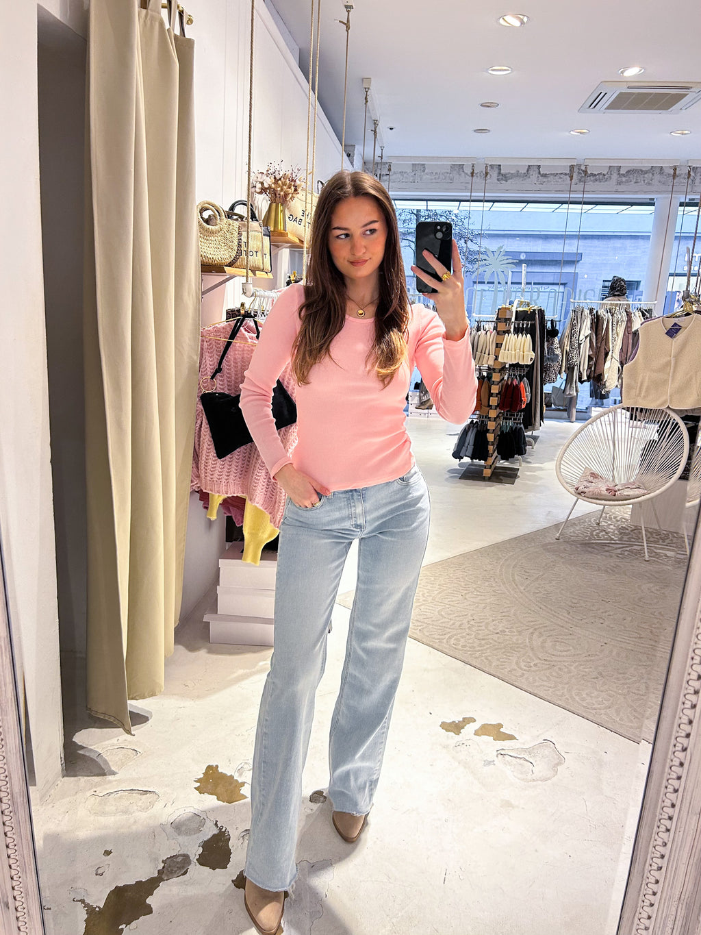 Ribbed Langarm Shirt Rosa