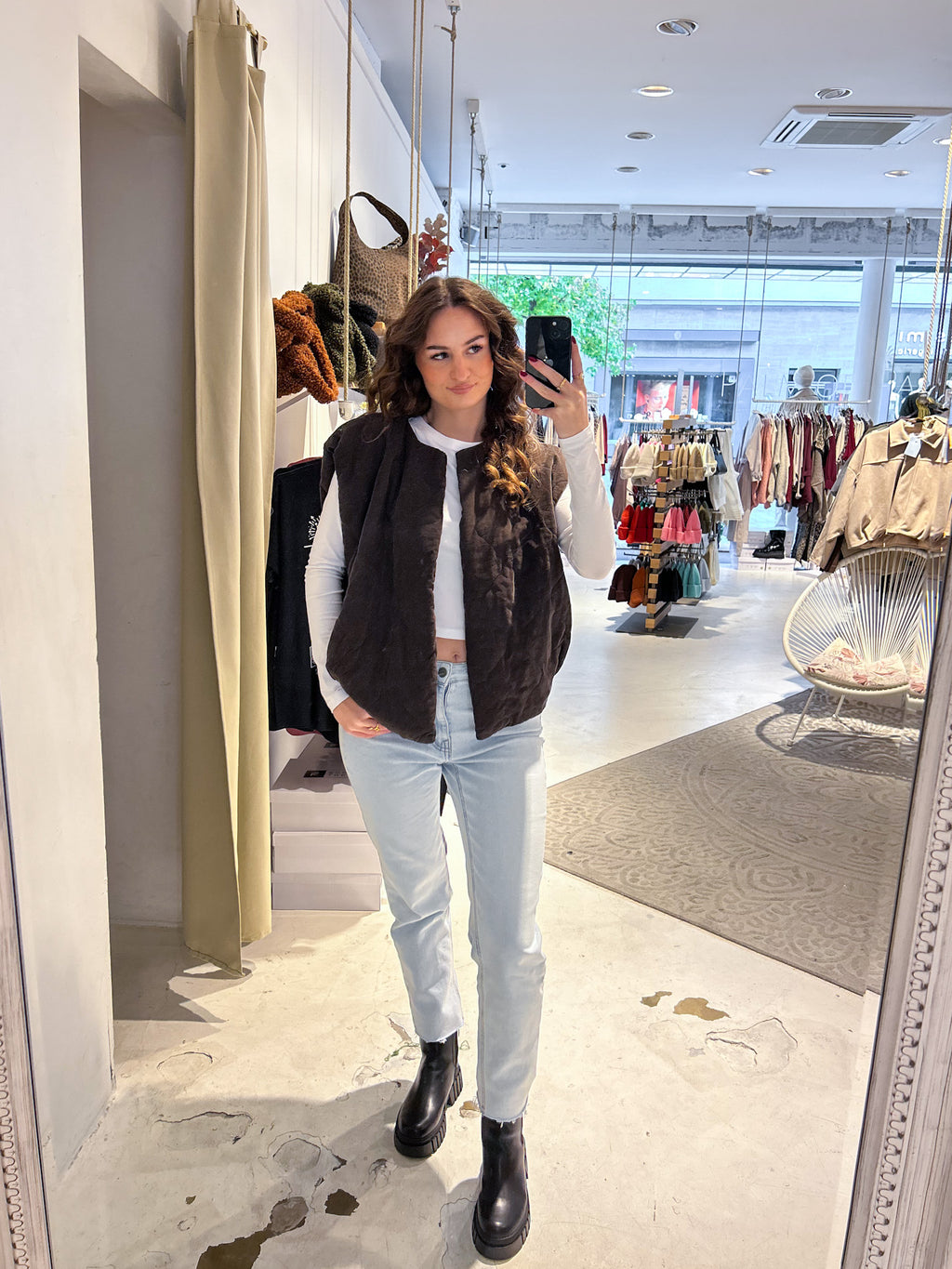 Marina ist 170cm groß und trägt Größe One Size. One Size entspricht den Größen 34-40.