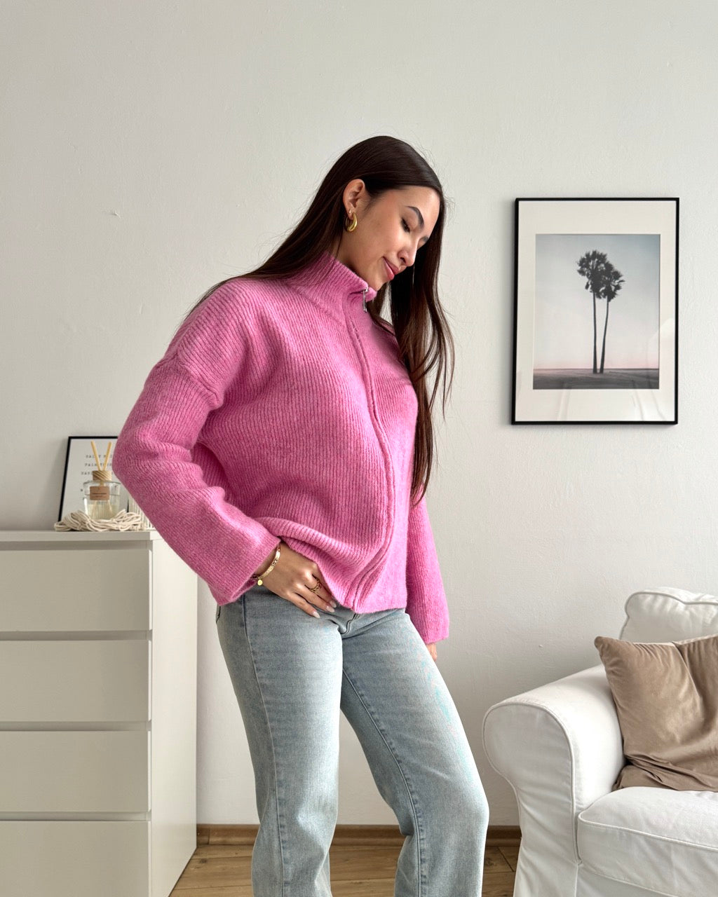 Strickjacke mit Zipper Pink